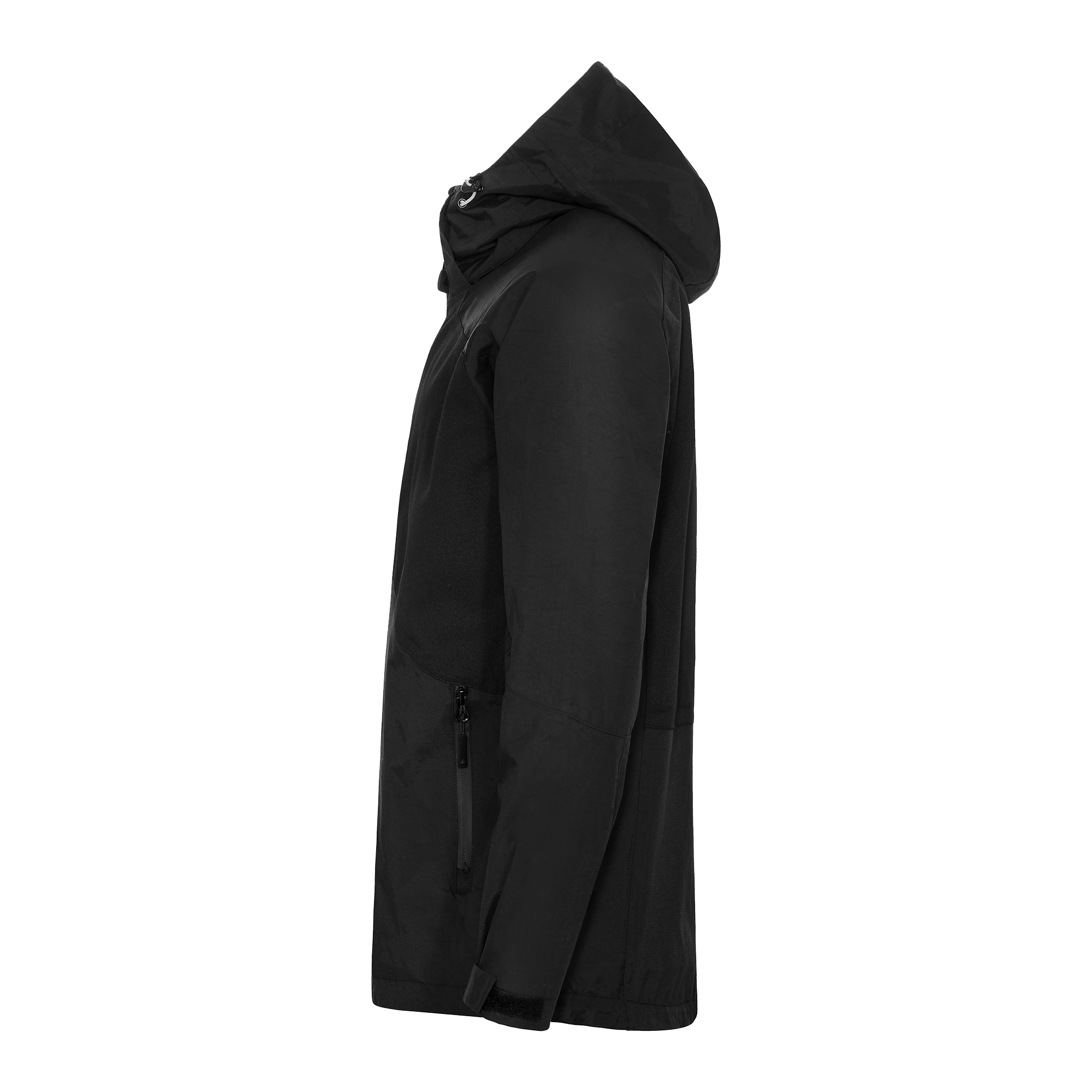 Kuoritakki kierrätysnylonia, joustopaneelit edessä ja takana takaavat liikkuvuuden. Tuulen- ja vedenpitävä teipatuilla saumoilla. Säädettävät hihansuut ja polyesteriresorit peukalolenkillä. Irrotettava säädettävä huppu ja kaksi sivutaskua ja rintatasku.