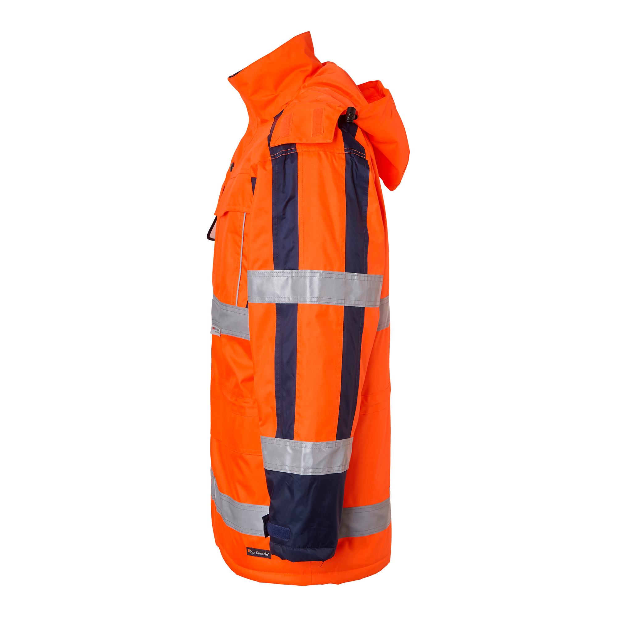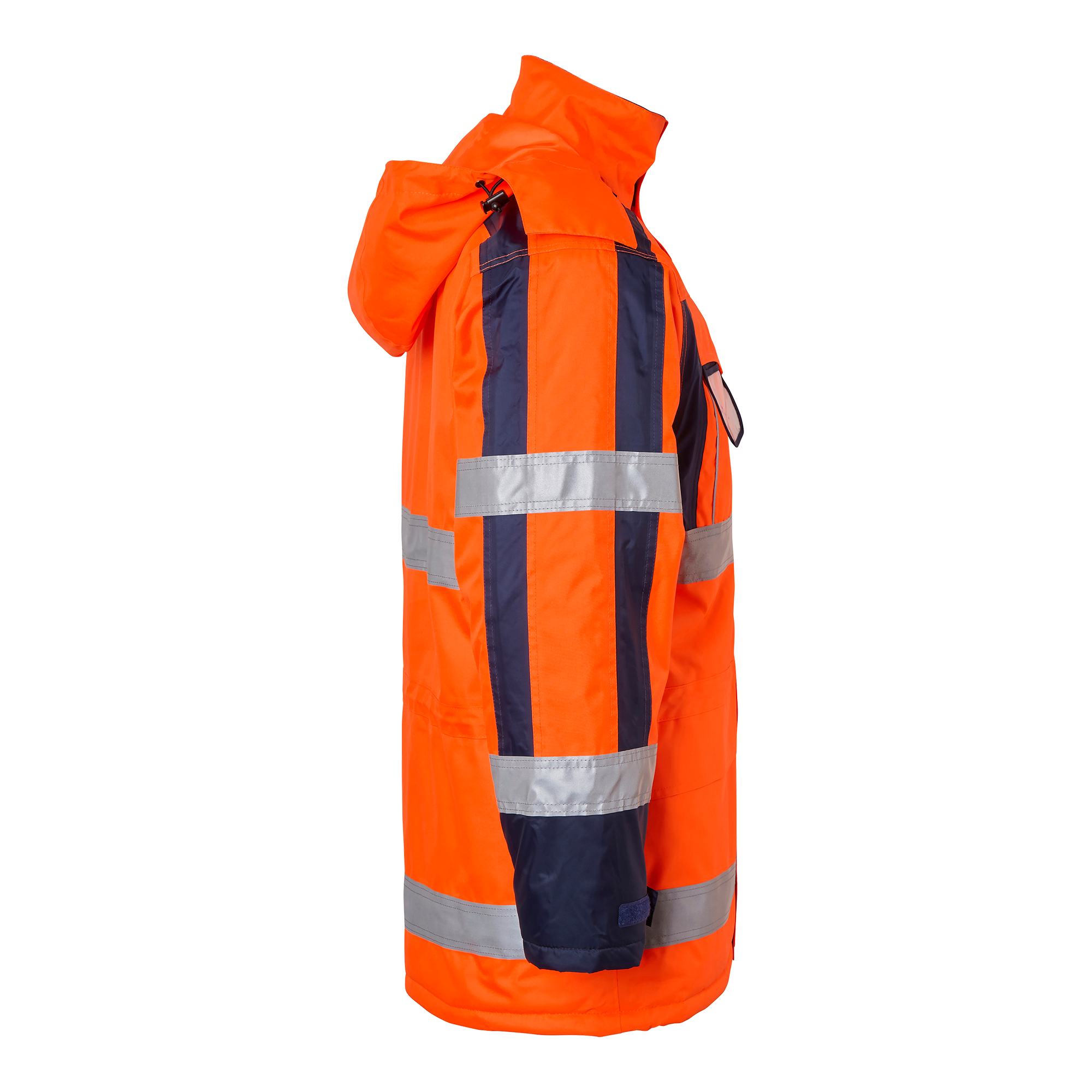 Tuulen- ja vedenpitävä parkatakki, jossa on teipatut saumat. Hyvä hengittävyys. Tikkivuori.Fleecekaulus. Vetoketju kauluksessa. Säädettävä huppu, jonka voi piilottaa kaulukseen. Kaksiläpällistä rintataskua. Kaksi rintataskua, joissa on piilovetoketju. Vetoketjullinen Napoleon-taskuetulistan alla. Kaksi läpällistä etutaskua. Kaksi sisätaskua, joista toisessa on puhelintasku.Resorit hihansuissa. Tarranauhalla säädettävät hihansuut. Säätönyöri vyötäröllä ja helmassa.Irrotettava henkilökortin pidike, jonka voi piilottaa taskuun. EN ISO 20471 luokka 3. EN 343 3/3,EN 342. Vesipilari 10 000 mm, hengittävyys 8000 g/m².