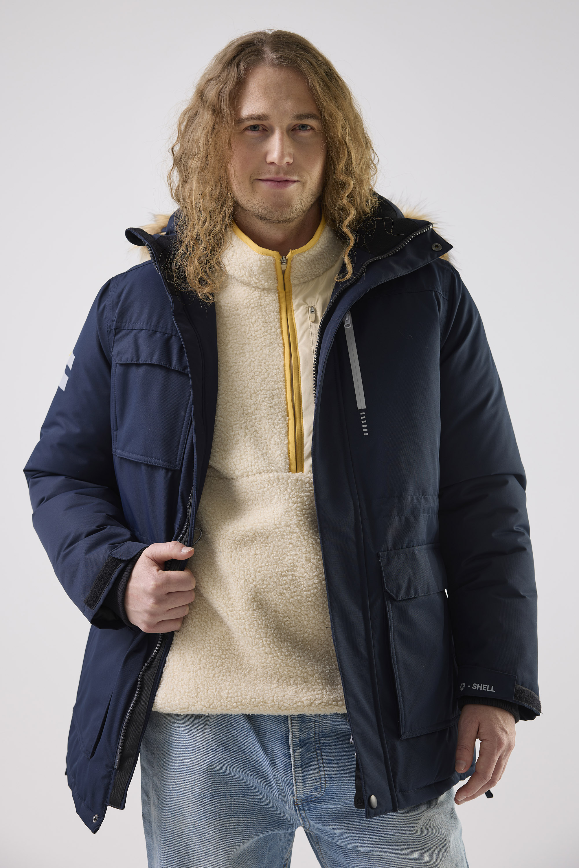 Talviparka kierrätettyä polyesteriä. Tuulen- ja vedenpitävä teipatuilla saumoilla. Päällikankaassa PFC-vapaa Bionic Eco -pintakäsittely. Useita taskuja, kiristysnyöri vyötäröllä ja vetoketjuhalkio sivuilla takaa istuvuuden. Hihoissa säädettävät polyesteriresorit, irrotettava ja säädettävä huppu.