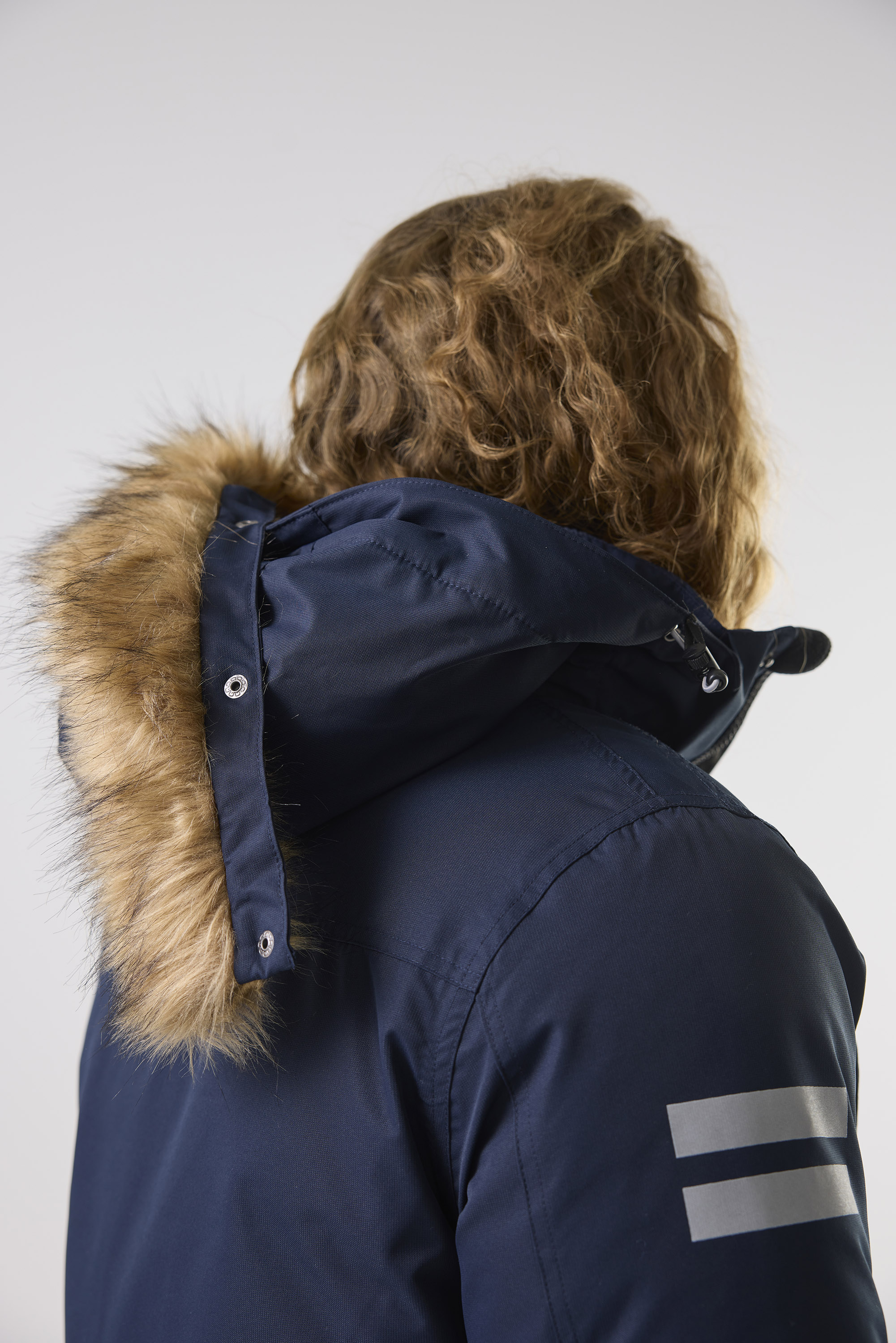 Talviparka kierrätettyä polyesteriä. Tuulen- ja vedenpitävä teipatuilla saumoilla. Päällikankaassa PFC-vapaa Bionic Eco -pintakäsittely. Useita taskuja, kiristysnyöri vyötäröllä ja vetoketjuhalkio sivuilla takaa istuvuuden. Hihoissa säädettävät polyesteriresorit, irrotettava ja säädettävä huppu.