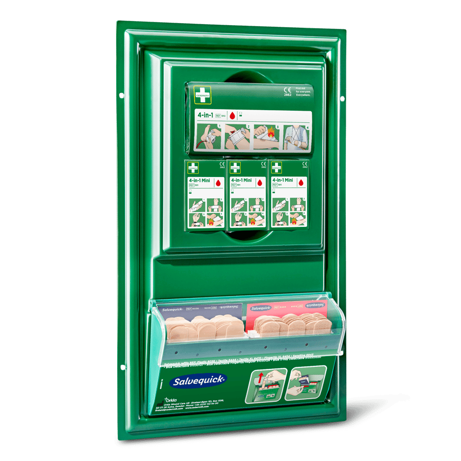 Førstehjelpstavle Mini. En kompakt tavle med kun plaster og blodstoppere. Perfekt for mindre områder eller som et tillegg til annet førstehjelpsutstyr.