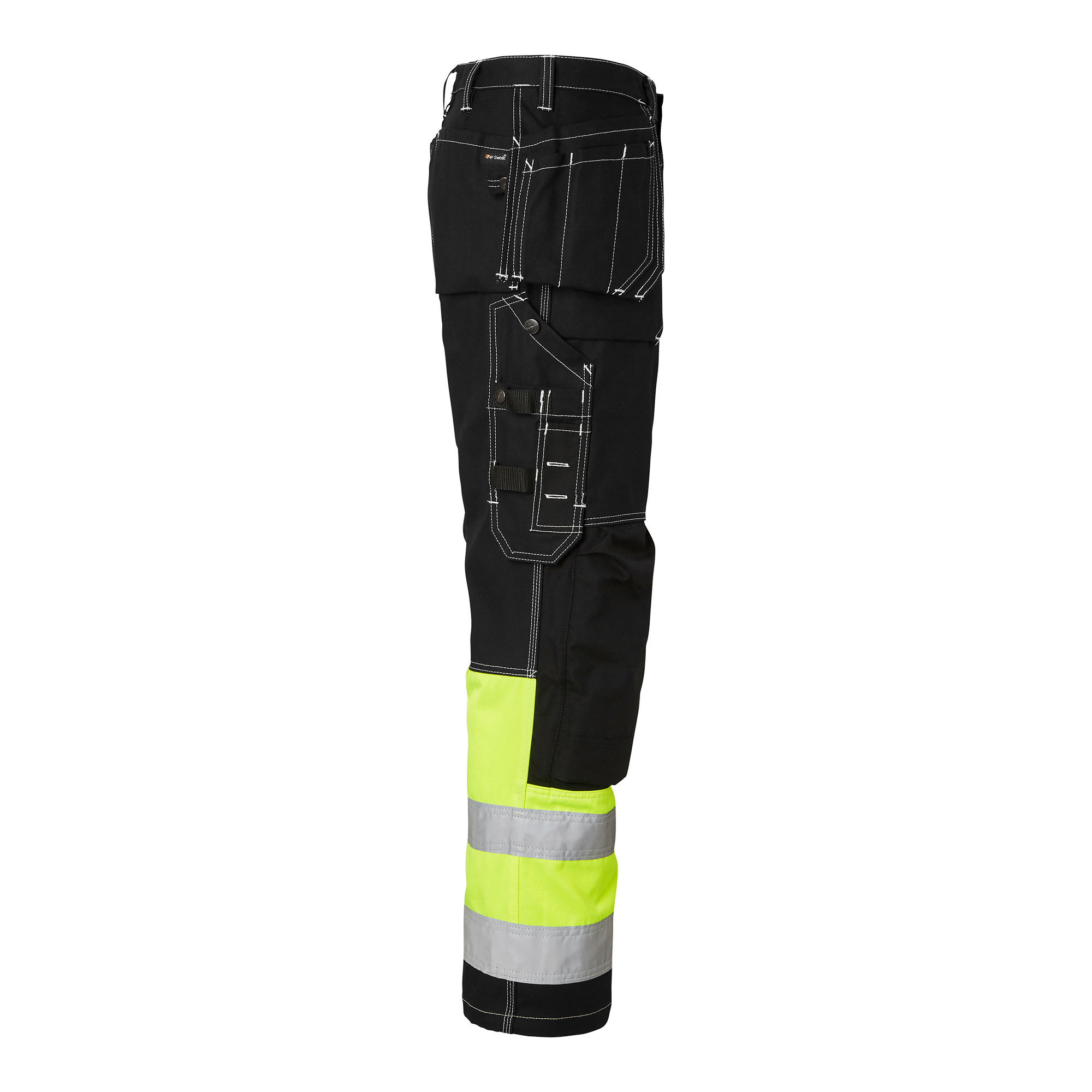 Oppdag Top Swedes 2515 Craftsmen Trousers Hi-Vis, den perfekte håndverkerbuksen for bygningsarbeidere som trenger høy synlighet. Buksen er designet med forbøyde ben og knelommer i slitesterk CORDURA®, noe som gir mulighet for to nivåer av knebeskyttelse for ekstra komfort og beskyttelse. Buksen har to frontlommer, to baklommer med belg og løsthengende spikerlommer, alle forsterket med CORDURA® for ekstra slitestyrke. Venstre hoftelomme har en ekstra lomme, mens høyre hoftelomme har tre mindre ekstralommer og en skjult ID-kortlomme som kan foldes ned. Linjalommen foran er senket nederst for bedre komfort og er utstyrt med to knivholdere, en pose og en pennelomme. Buksen har også en venstre benlomme med skjult glidelås, pennlomme og telefonlomme, samt en justerbar hammerkrok og en D-ring. Hi-Vis-designet sørger for økt synlighet på arbeidsplassen, noe som er avgjørende for sikkerheten. Disse egenskapene gjør buksen ideell for krevende arbeidsmiljøer der funksjonalitet, slitestyrke og sikkerhet er avgjørende. Velg 2515 Craftsmen Trousers Hi-Vis for en kombinasjon av høy kvalitet, funksjonalitet, komfort og synlighet som oppfyller de høyeste standarder for arbeidsklær.