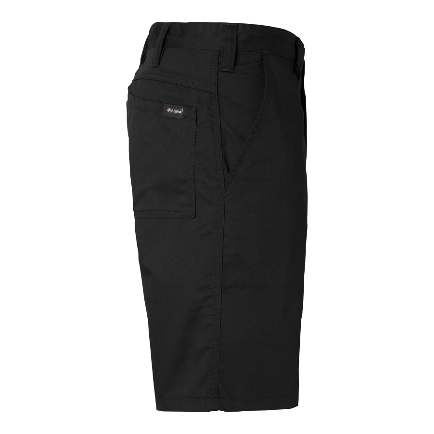 Shorts med to påsydde lommer foran, to baklommer og en benlomme med klaff og telefonlomme fra Top Swede. Laget av polyester og 3 bomull. Ideell for arbeid i byggebransjen og industrien.