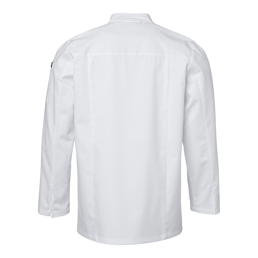 Elton Chef’s Coat er en klassisk kokkefrakk i herremodell med dobbeltknepping. Kokkefrakken har en romslig passform og lange ermer med enkle ermeavslutninger med splitt som er lett å brette opp. Frakken har pennelomme på venstre erme og en hempe i nakken. Knapper er ikke inkludert, men kan kjøpes separat i 10-pakning.