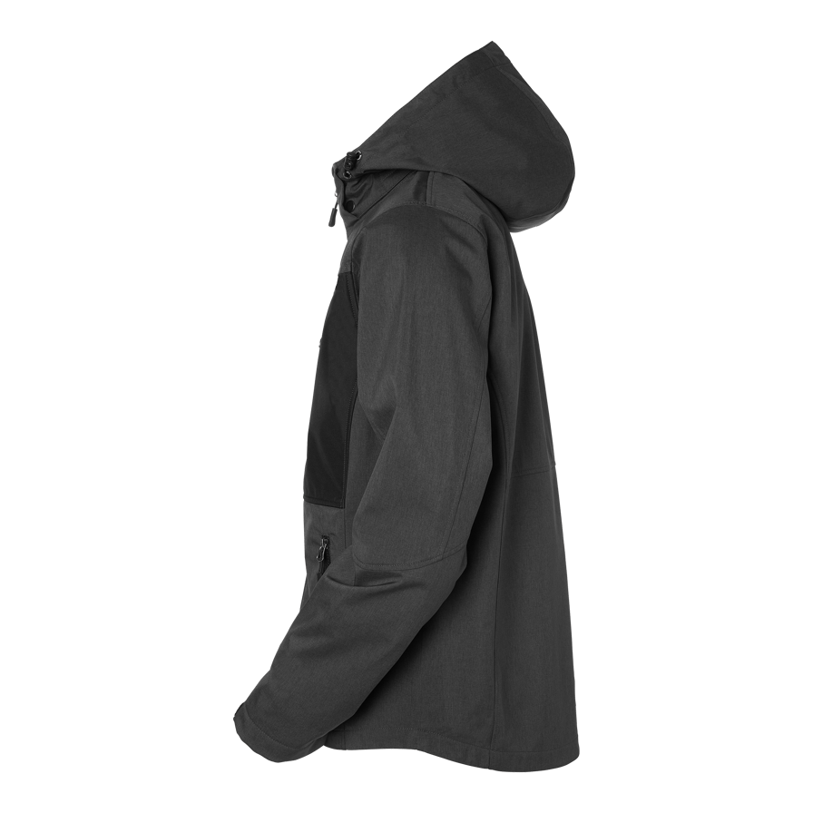 Vannavvisende og vindtett softshelljakke med god pusteevne. Justerbare mansjetter og refleksdetaljer på hetten. Brystlomme i en annen farge og to romslige sidelommer med glidelås.