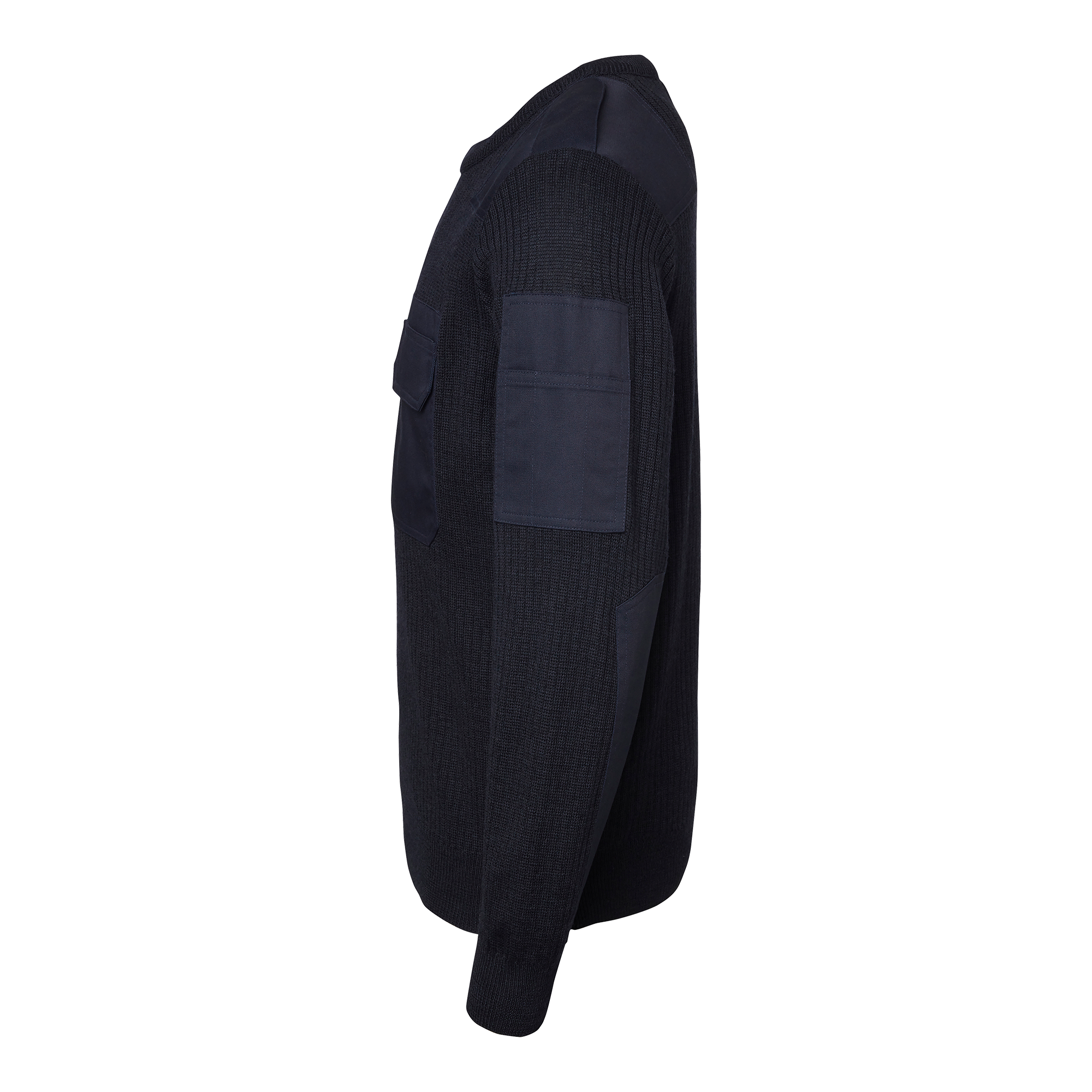 Klassisk NATO-genser med rund hals. Genseren har forsterkninger ved skuldre og albuer. Nederst har genseren en 1x1 ribbestrikk med elastan som holder passformen. Utstyrt med skulderklaffer med plass til gradsbetegnelse og har en lomme på brystet og en lomme på ermet.