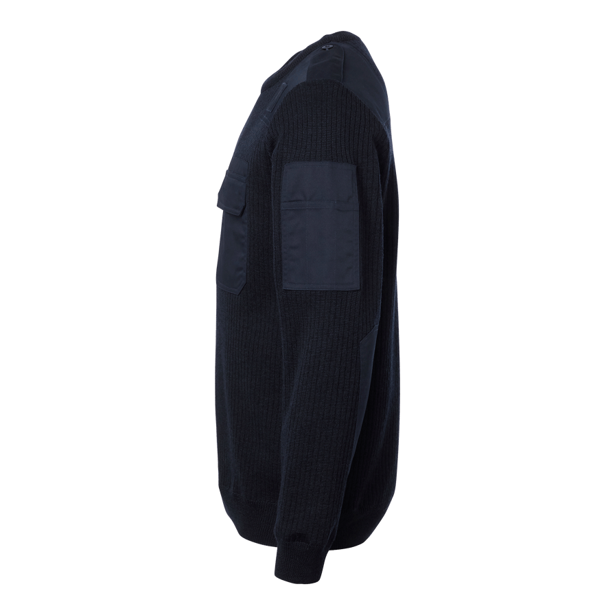 NATO Pullover Windstopper med rund hals og fôr i 100 % polyester som gir effektiv vindbeskyttelse. Forsterkede skuldre og albuer, ribbestrikkede mansjetter med elastan, skulderklaffer, monofonholder og lommer på bryst og erme.