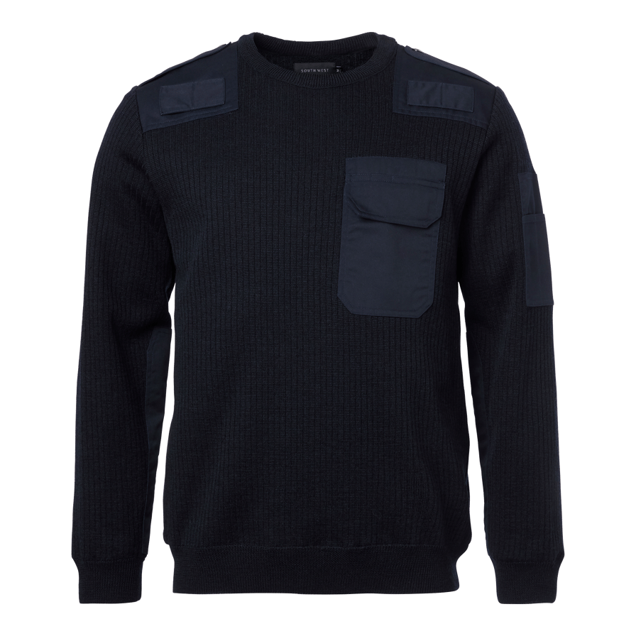 NATO Pullover Windstopper fra South West er en klassisk og funksjonell genser med rund hals og et innvendig fôr i 100% polyester som effektivt beskytter mot vind og kulde. Genseren er utviklet for å møte kravene i tøffe yrkesmiljøer, med forsterkede skulderpartier og albuer som gir ekstra slitestyrke og holdbarhet over tid. Ribbestrikkede mansjetter og nederkant med elastan sørger for at genseren sitter godt og behagelig hele dagen. Praktiske detaljer som skulderklaffer for gradbetegnelse, monofonholder samt lommer på bryst og erme gjør plagget både funksjonelt og gjennomtenkt. Med sitt tidløse design og solide konstruksjon er NATO Pullover et pålitelig og stilrent valg for deg som trenger komfort og beskyttelse i arbeidsdagen.