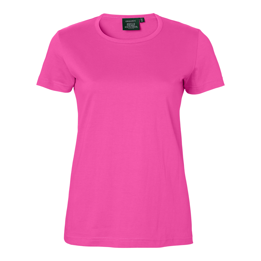 Silikonvasket single jersey-T-skjorte for kvinner med smal passform og båndkrage. En stilig og komfortabel modell som passer både til jobb og fritid.