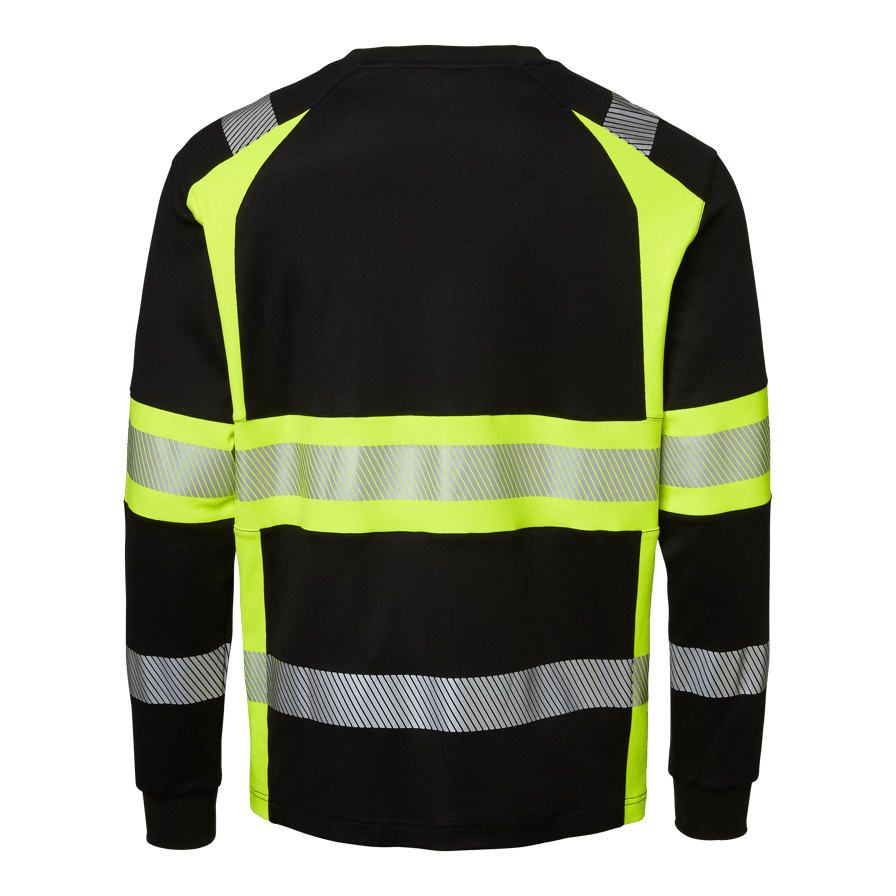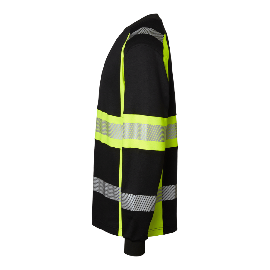Klasse 1 langermet varsel T-skjorte med rund hals og segmentert refleks for ekstra fleksibilitet. Ideell for fagfolk i byggebransjen og industrien som trenger ekstra god synlighet.