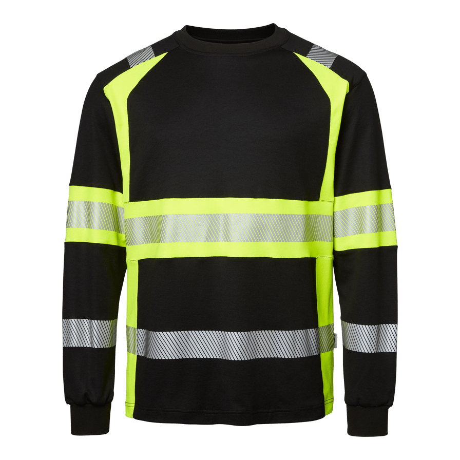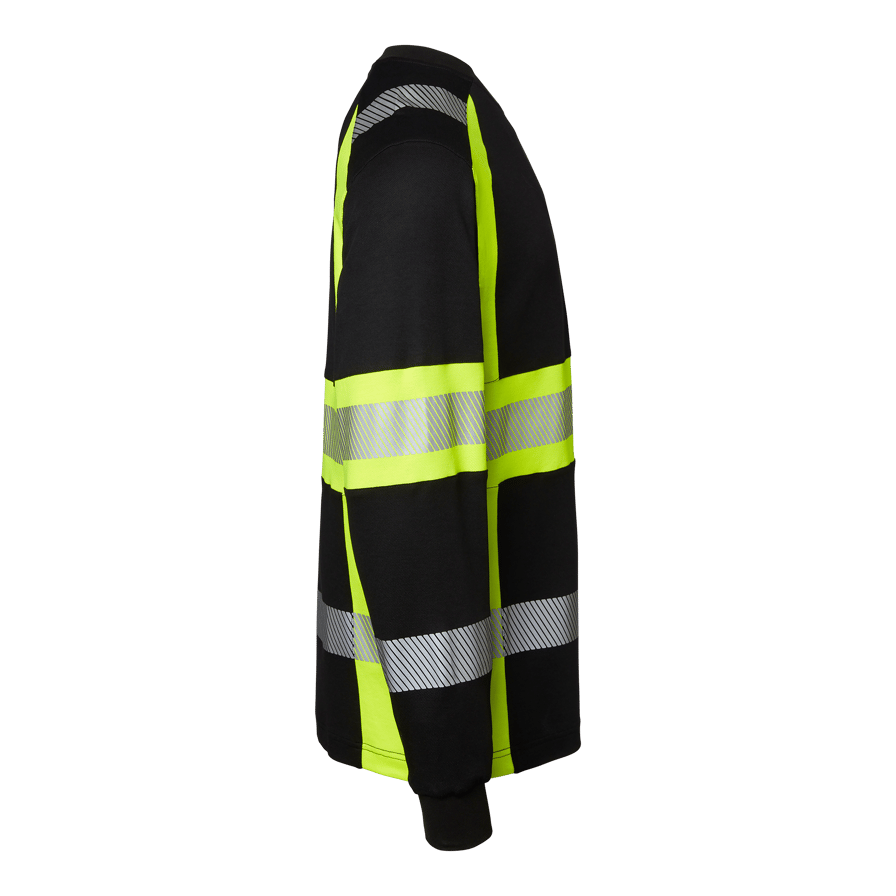 Klasse 1 langermet varsel T-skjorte med rund hals og segmentert refleks for ekstra fleksibilitet. Ideell for fagfolk i byggebransjen og industrien som trenger ekstra god synlighet.
