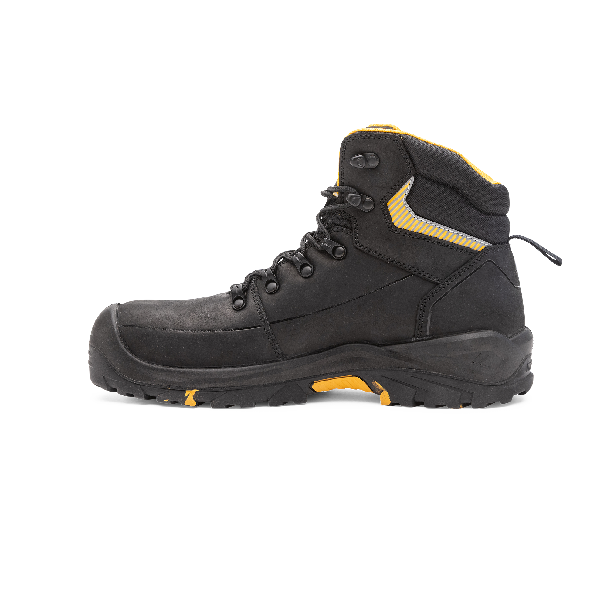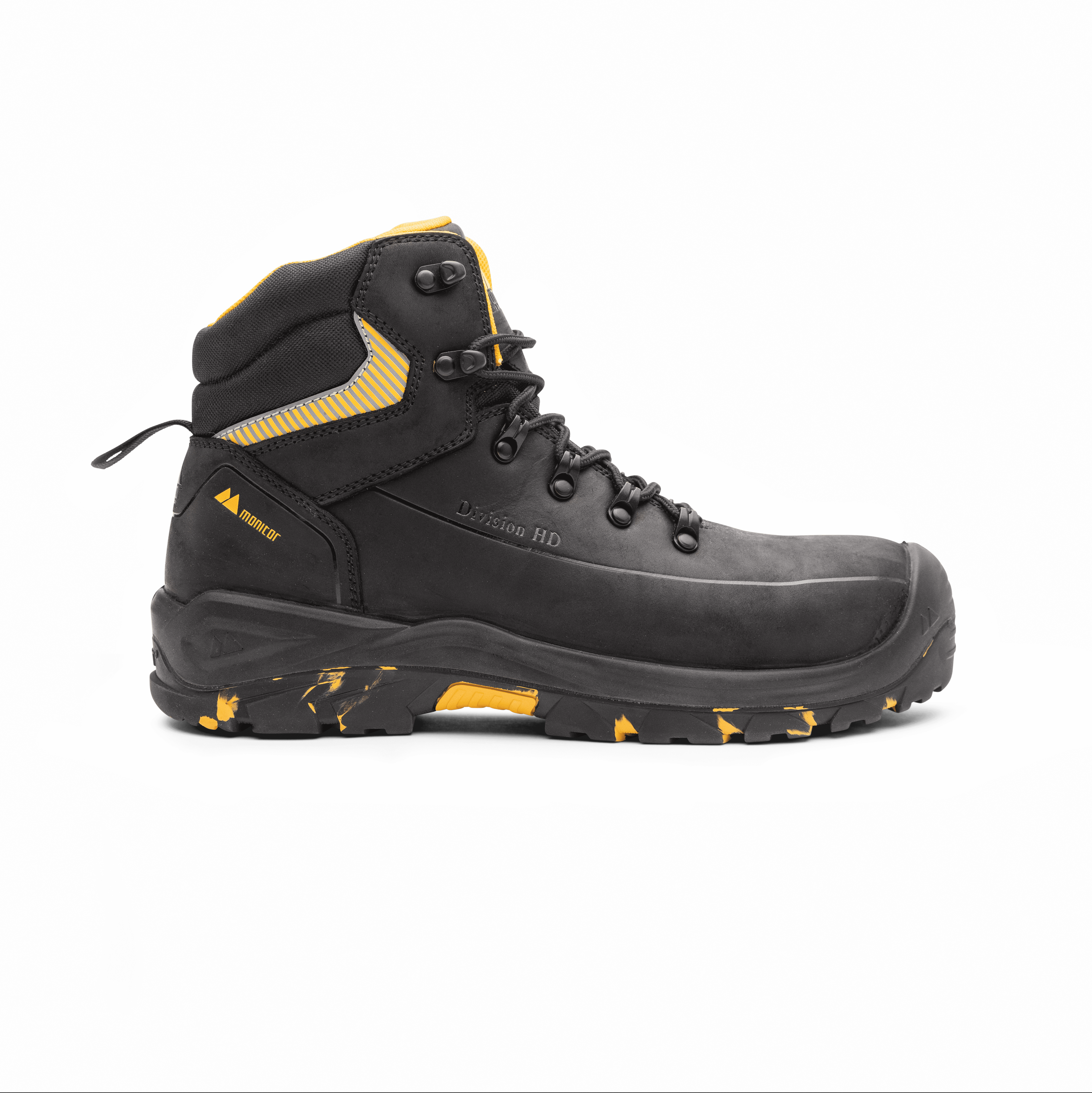 Oppdag Monitor Division Safety Boot, en kraftig halvstøvel i Monitor Stealth-serien som kombinerer høy sikkerhet med eksepsjonell slitestyrke og komfort for fagfolk innen bygg og anlegg og industri. Denne sikkerhetsstøvelen er konstruert for å tåle de tøffeste forhold og gi maksimal beskyttelse og komfort gjennom hele arbeidsdagen. Overdelen er laget av smurt fullnarvet skinn som gir overlegen slitestyrke og holdbarhet, mens den kraftige tåkappen i polyuretan gir ekstra beskyttelse mot slitasje. Monitor Division Safety Boot har Monitors Heavy Duty HRO-yttersåle, laget av slitesterk gummi og med en mykere polyuretanblanding i mellomsålen, noe som gir utmerket grep og demping på en rekke ulike underlag. Denne kombinasjonen gjør støvelen lettere enn de fleste andre HD-støvler på markedet. Pantzar APT-spikebeskyttelse og en bred tåkappe i kompositt gir maksimal beskyttelse mot støt og gjennomtrengning uten at det går på bekostning av fleksibiliteten. Innersålen, Monitors klassiske SS2.0-såle, er laget av PU med 3 tettheter og gir god komfort og støtte. Dri-lex-tekstilfôret er fuktabsorberende og hurtigtørkende, slik at føttene holdes tørre og komfortable. Monitor Division Safety Boot er ideell for både menn og kvinner som er ute etter en pålitelig og robust halvstøvel til en konkurransedyktig pris. Velg Monitor Division Safety Boot for å oppleve en kombinasjon av høy sikkerhet, enestående komfort og slitestyrke gjennom hele arbeidsdagen.