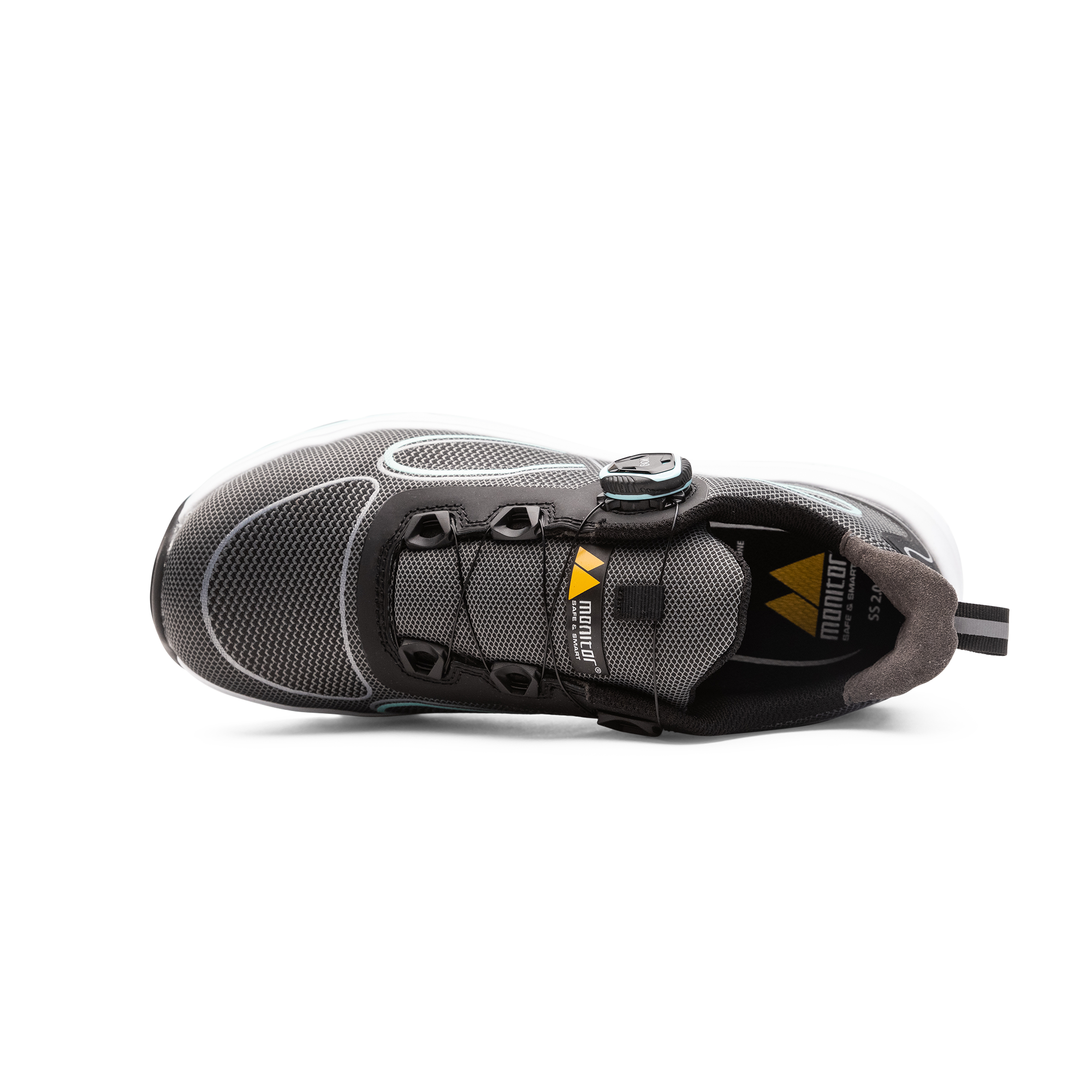 Monitor Crow Safety Shoe er en lett og slitesterk vernesko for kvinner med en bred tåkappe i aluminium og Pantzar APT spikertrampbeskyttelse. Skoen har Moknit-overdel i tekstil, M-Rebound Recover-mellomsåle og sklisikker gummisåle. Utstyrt med BOA® Fit System for optimal passform.