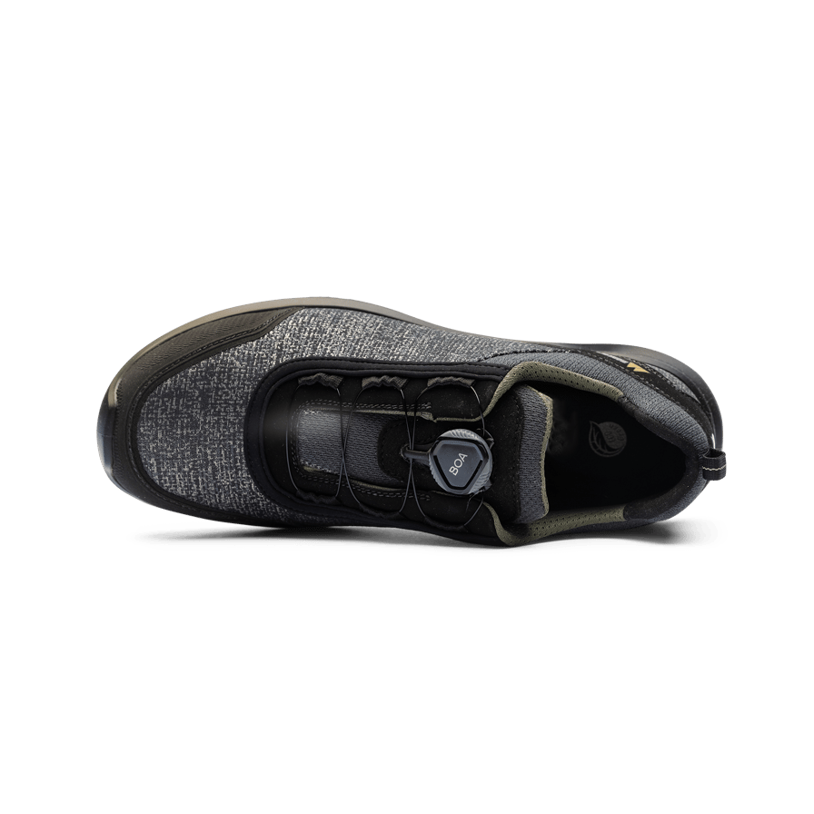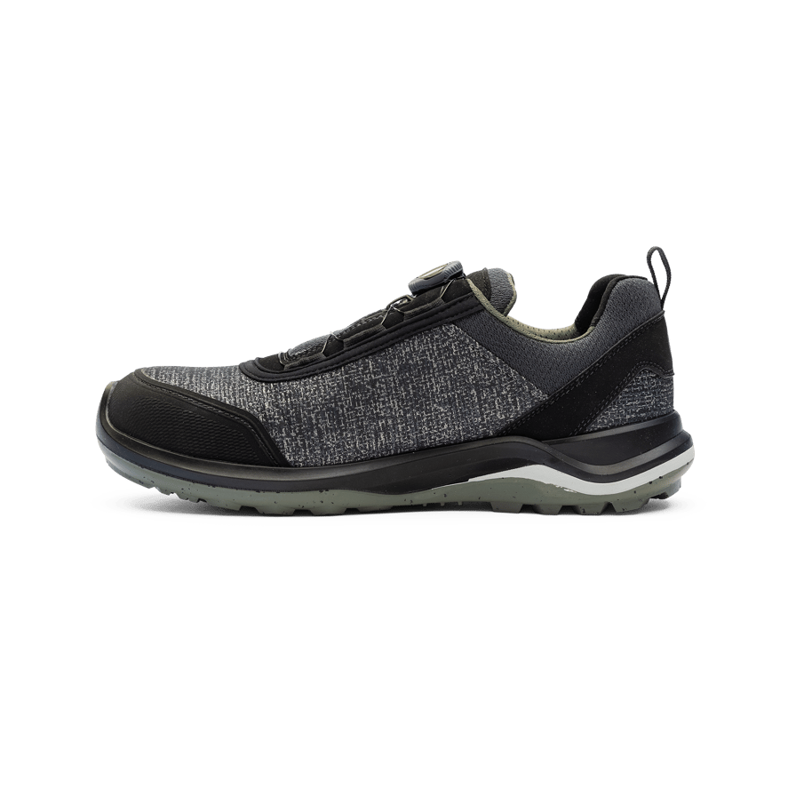 Monitor Eco Green Safety Shoe er en bærekraftig vernesko med overdel i resirkulert PET-plast og Vibram-yttersåle i resirkulert gummi. Skoen har tåkappe i aluminium, mellomsåle i PU og BOA® Fit System for en presis passform.
