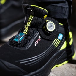 ICE Evolution Flow Connected er en arbeidssko med integrert Quin-sensor, klar for tilkobling til Quins ecosystem. M-Return-såle med Super Critical Foam gir utmerket demping. Luftig mesh-overdel, Equip Fit Wide-passform, MNTR1-tåhette og Li2 BOA® gir optimal komfort, passform og ytelse.