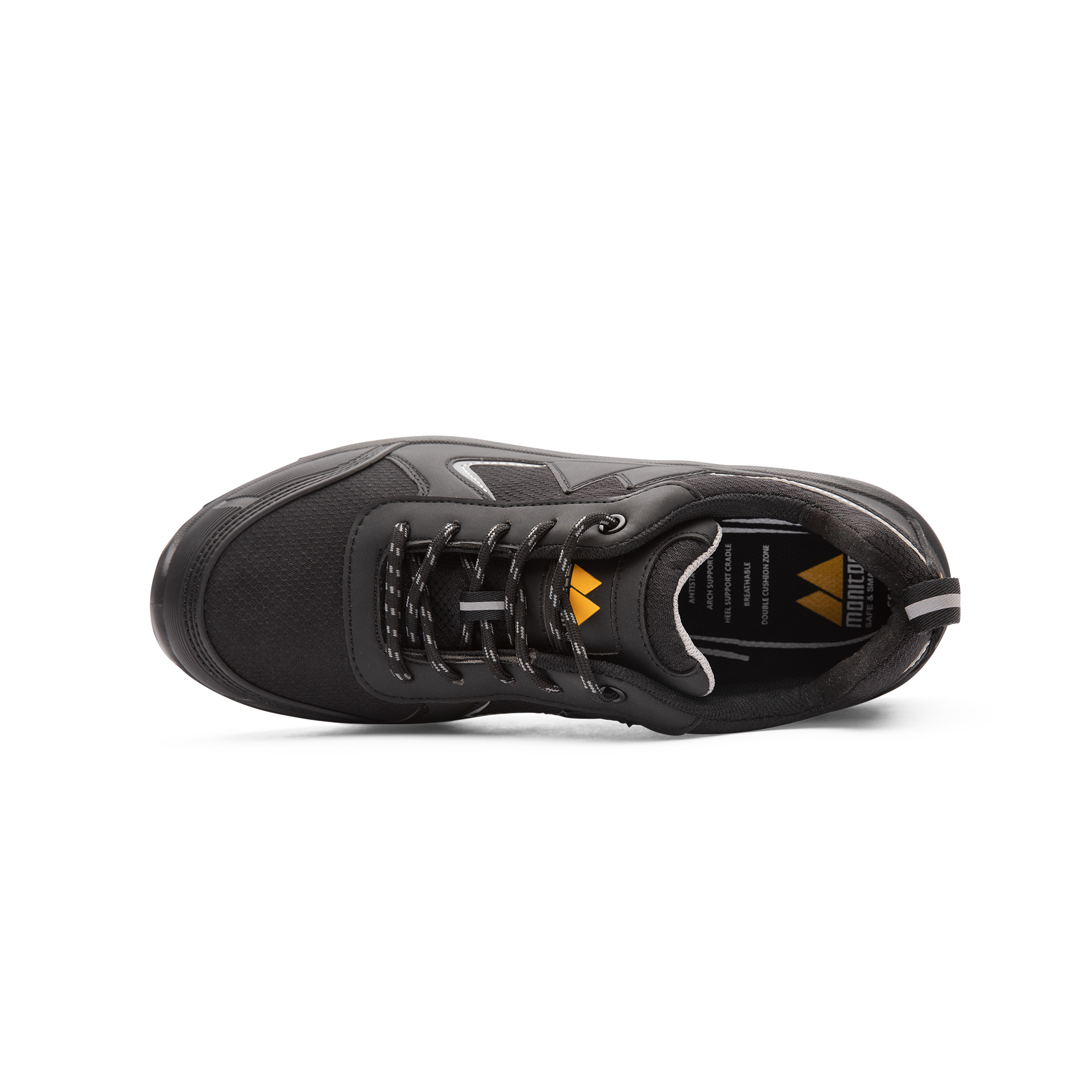 Verneskoen Monitor Madison er en rimelig vernesko med sporty design, tåhette i kompositt og APT-spikebeskyttelse. Skoen har en overdel i mikrofiber med gummiforsterkning og en yttersåle i polyuretan med 2 tettheter.