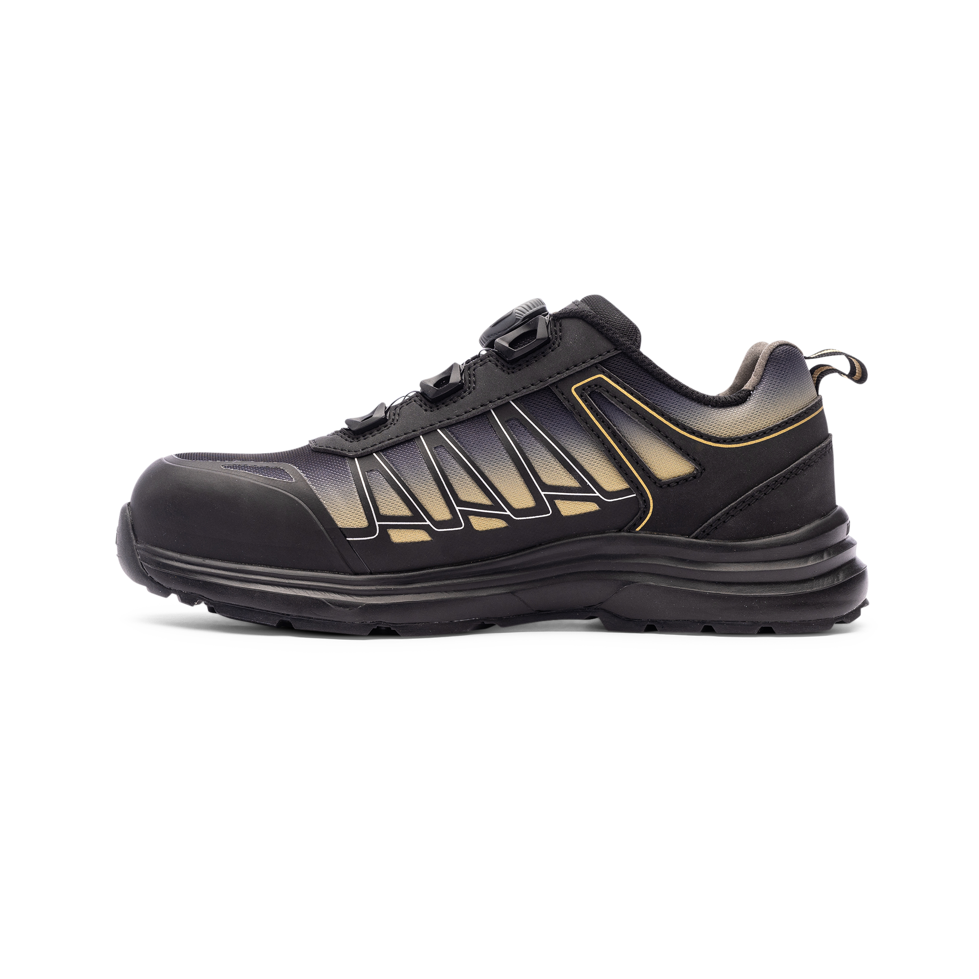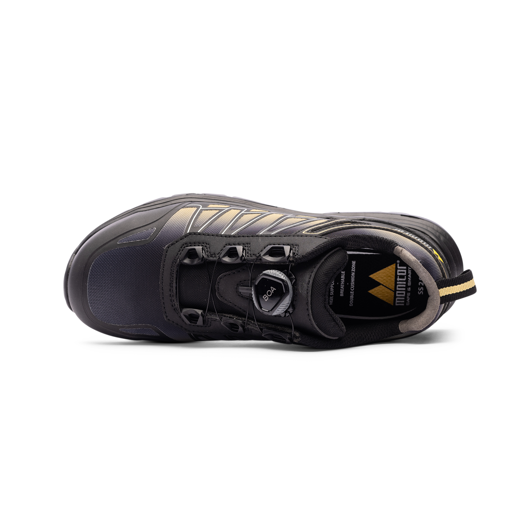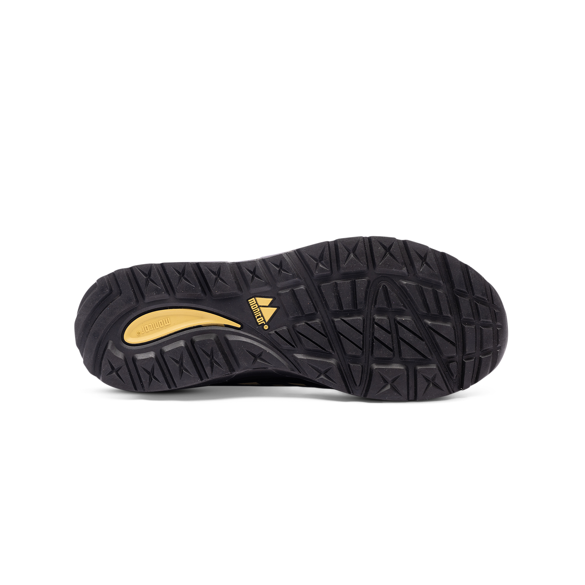Sky Safety Shoe w er en vernesko fra Monitor med overdel i mikrofiber og TPU, fukttransporterende meshfôr, tåhette i aluminium, Pantzar APT-spikerbeskyttelse og sklisikker gummisåle. Utstyrt med BOA® Fit System.