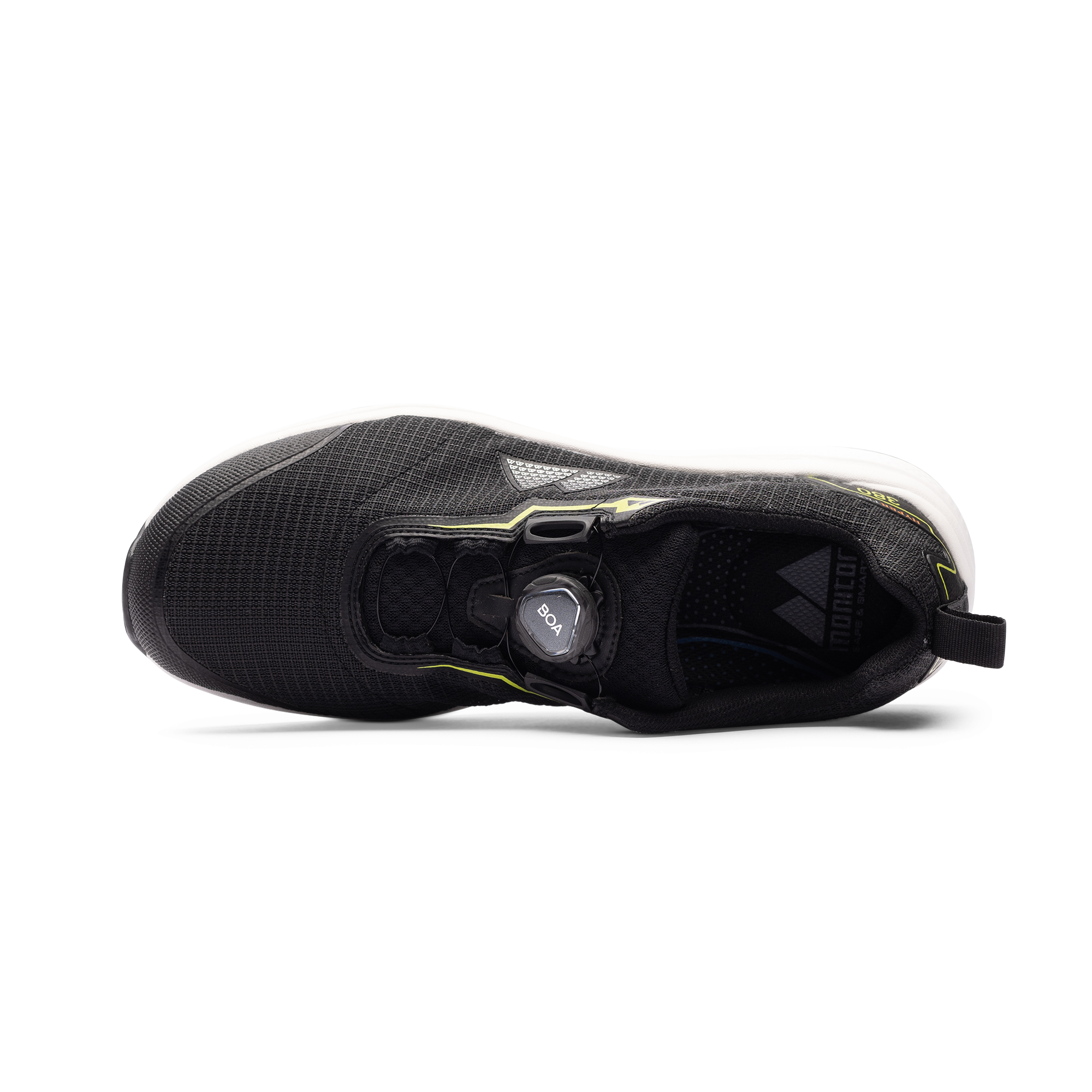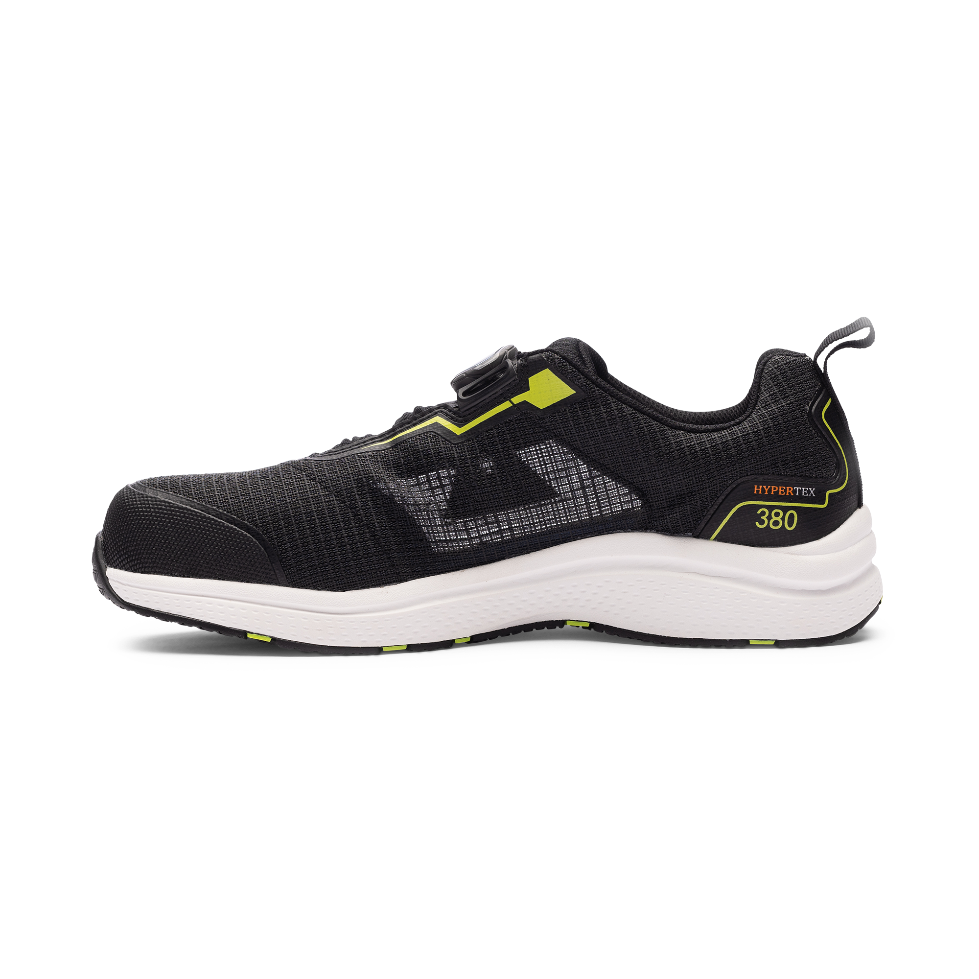 Three 100 Eighty Safety Shoe er en lett vernesko fra Monitor med tåkappe i aluminium og Pantzar spikertrampbeskyttelse. Utstyrt med BOA® Fit System, Hypertex-overdel, EVA-mellomsåle og yttersåle i nitrilgummi. Ideell for lager-, industri- og lettere byggearbeid.
