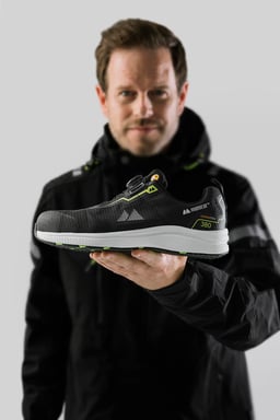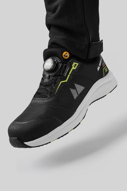 Oppdag verneskoen Three 100 Eighty, en innovasjon fra Monitor som kombinerer letthet og avansert teknologi for å gi optimal sikkerhet og komfort i arbeidsmiljøer. Verneskoen veier bare 380 gram og er utstyrt med tåkappe i aluminium og Pantzar-spikerbeskyttelse for maksimal beskyttelse mot støt og skarpe gjenstander. Overdelen er laget av Hypertex, et ekstremt pustende og slitesterkt materiale som gir utmerket pusteevne og holdbarhet. Three 100 Eighty har en bred passform til tross for at den er lett, noe som gjør den komfortabel for langvarig bruk. Skoen er utstyrt med BOA® Fit System med L6-skive på vristen, noe som gjør det raskt og enkelt å justere for perfekt passform. EVA-mellomsålen gir overlegen støtdemping, mens yttersålen i nitrilgummi sørger for utmerket grep og stabilitet på ulike underlag. Innersålen, Monitors Pro Support recycle-såle, er laget av resirkulert polyuretan og gir eksepsjonell komfort og støtte gjennom hele arbeidsdagen. Verneskoen Three 100 Eighty er ideell for lagerarbeid, industriarbeid og lettere byggearbeid, og er sannsynligvis den letteste verneskoen i verden. Velg verneskoen Three 100 Eighty for å sikre optimal beskyttelse og komfort gjennom hele arbeidsdagen.
