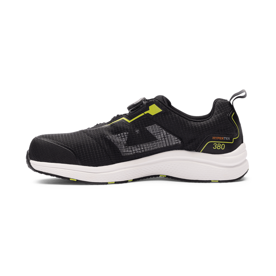 Three 100 Eighty Safety Shoe er en lett vernesko fra Monitor med tåkappe i aluminium og Pantzar spikertrampbeskyttelse. Utstyrt med BOA® Fit System, Hypertex-overdel, EVA-mellomsåle og yttersåle i nitrilgummi. Ideell for lager-, industri- og lettere byggearbeid.