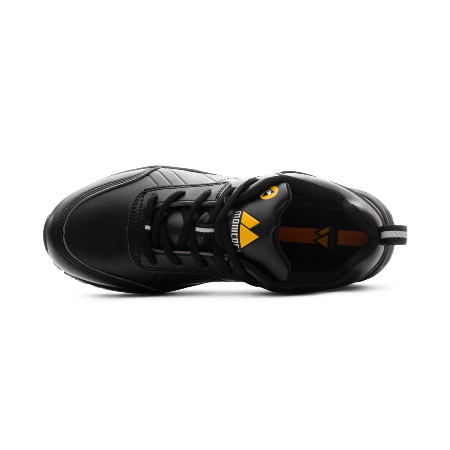 Monitor M Express ESD er en arbeidssko uten tåhette og piggbeskyttelse. Den avanserte SRC-klassifiserte E50-yttersålen gir utmerket grep på glatte underlag og er oljebestandig (FO). Overdelen har en sporty design, men oppfyller de høyere kravene til en profesjonell sko.