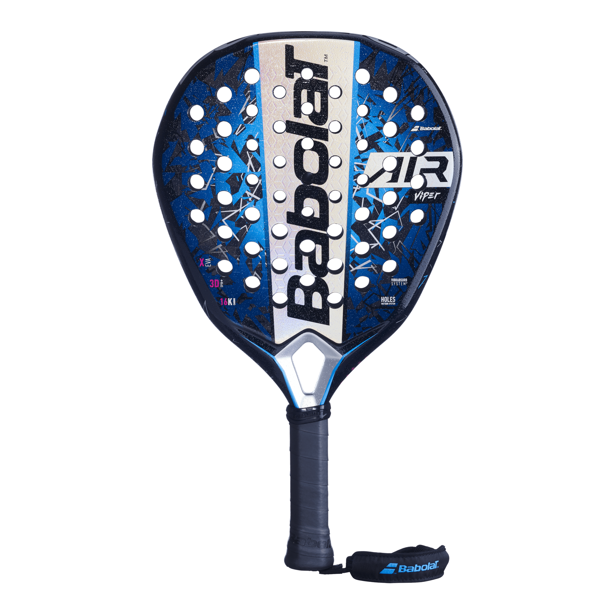 Babolat Air Viper er den mest lettspilte modellen i Viper-serien og perfekt for spillere som søker hurtighet og eksplosiv kraft. Den hybride designen kombinerer presisjon og kontroll med maksimal fart.Kjernen er bygget med X-EVA-teknologi i tre lag: to harde ytre lag for kraft og et mykere indre for komfort og følelse. Treffflaten i 16K karbon med 3D Spin+-struktur gir bedre grep og spinn, mens HPS Technology sikrer optimal hullplassering.Vibrasorb System² reduserer vibrasjoner for mer komfort, og Smart Buttcap gjør det enkelt å bytte håndleddsstropp etter behov.
