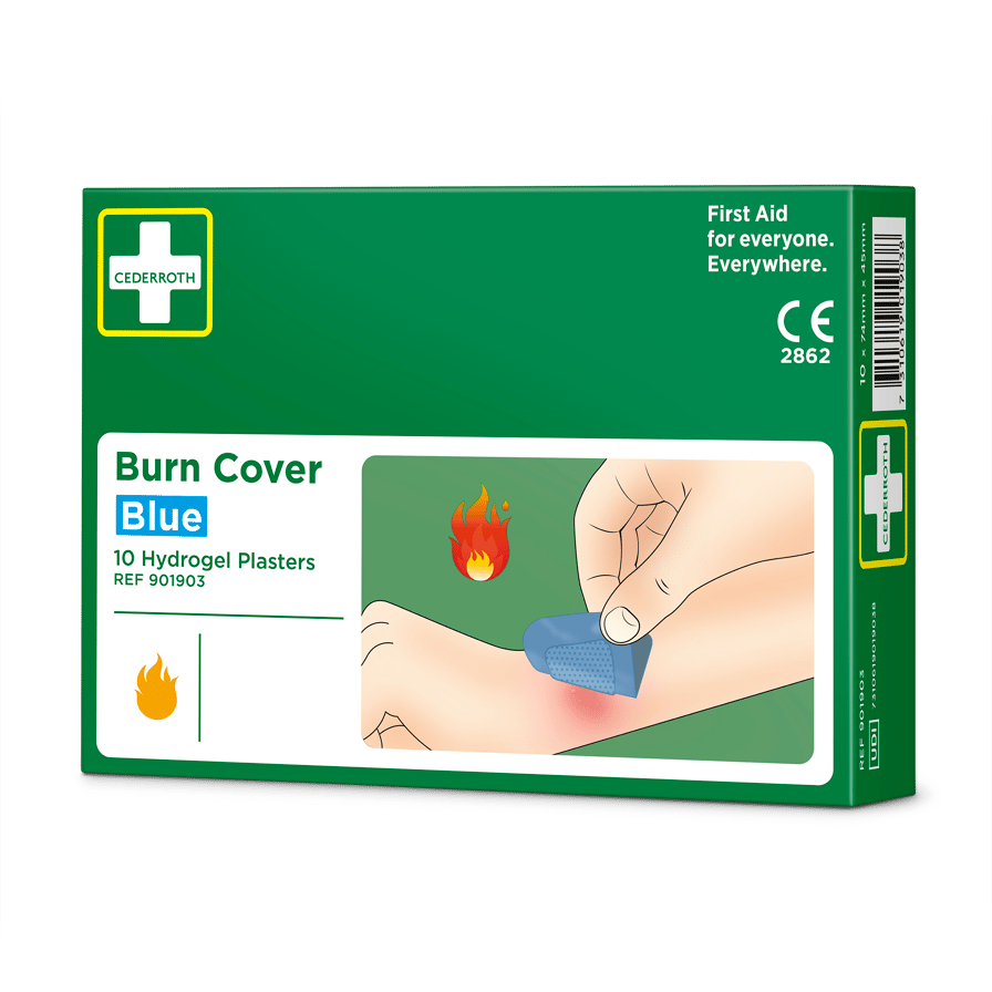 Cederroth Burn Cover skyddar och lindrar vid mindre brännsår. Sårdynan består av en sval hydrogel som täcker hudens nervtrådar och hjälper till att lindra. Samtidigt skapas en fuktig miljö vilket motverkar bildning av sårskorpor och ger snabbare sårläkning. Sårdynan fastnar inte i sår.