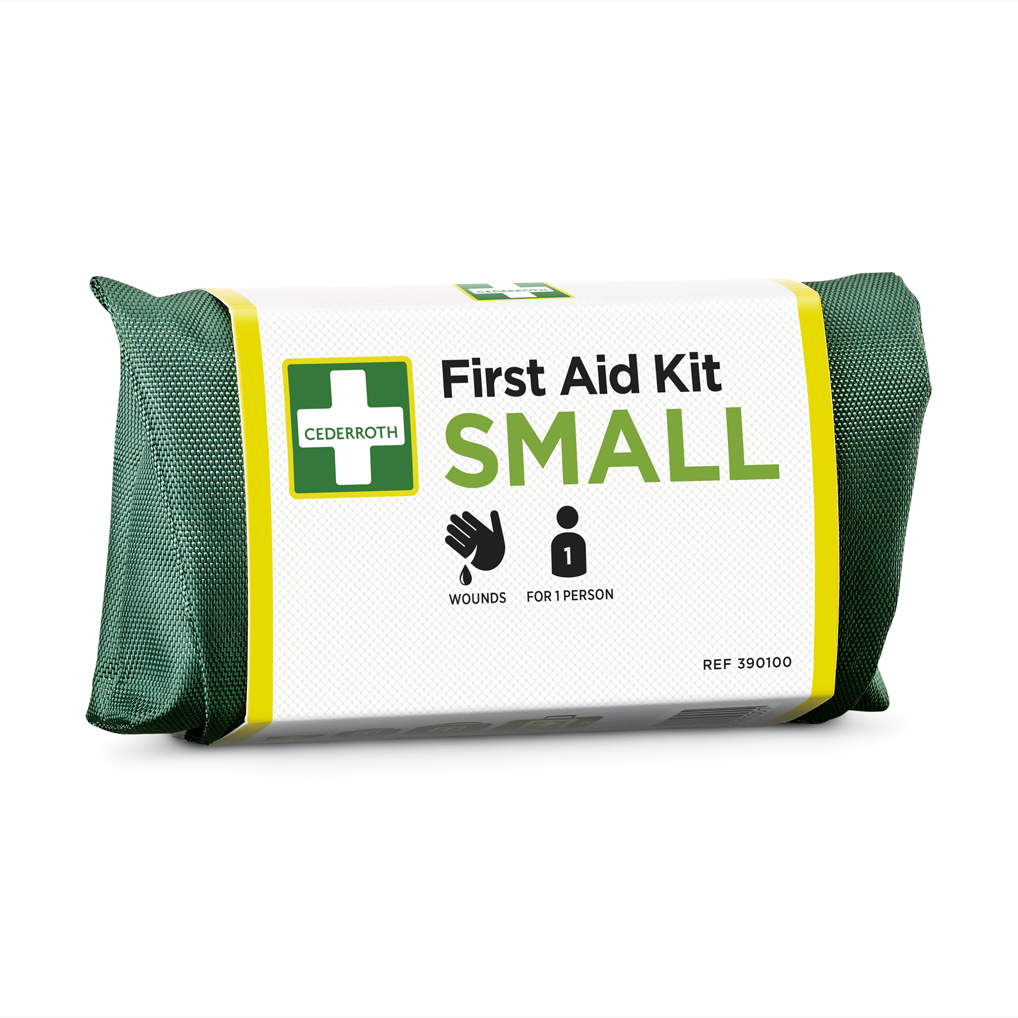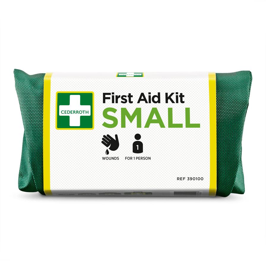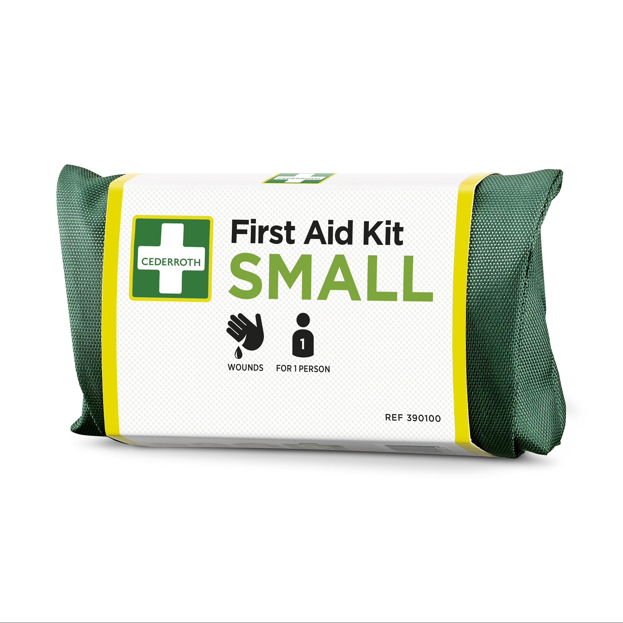 Cederroth First Aid Kit Small är ett smidigt kit i grön nylon med kardborrestängning och bälteshällor. Lätt att bära med sig för dig som ofta är på språng. För en person. Produktfördelar: lätt att ta med. Plåster lättåtkomligt. Synlig på håll. Innehåll: 1 Cederroth 4-in-1 Blodstoppare (REF 1910). 6 Salvequick Plåster (REF 510005534). 2 Salvequick Big Plasters (REF 510005534). 2 Salvequick Sårtvättare (REF 510005534). Mått: B 145 x H 74 x D 51 mm.