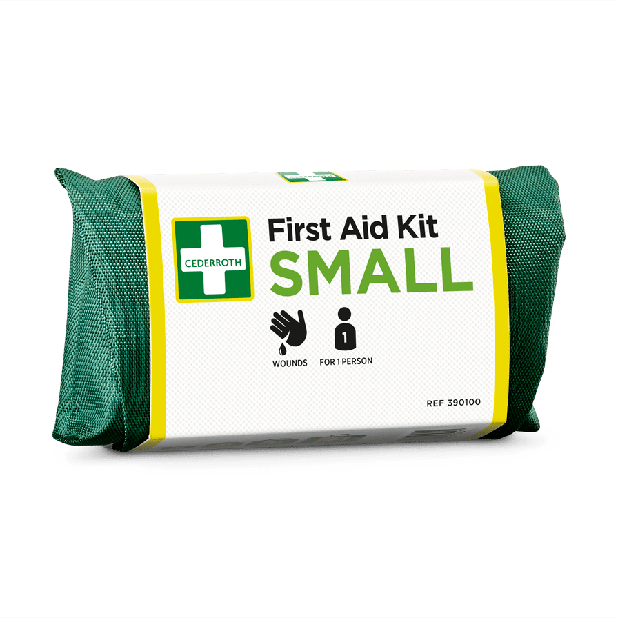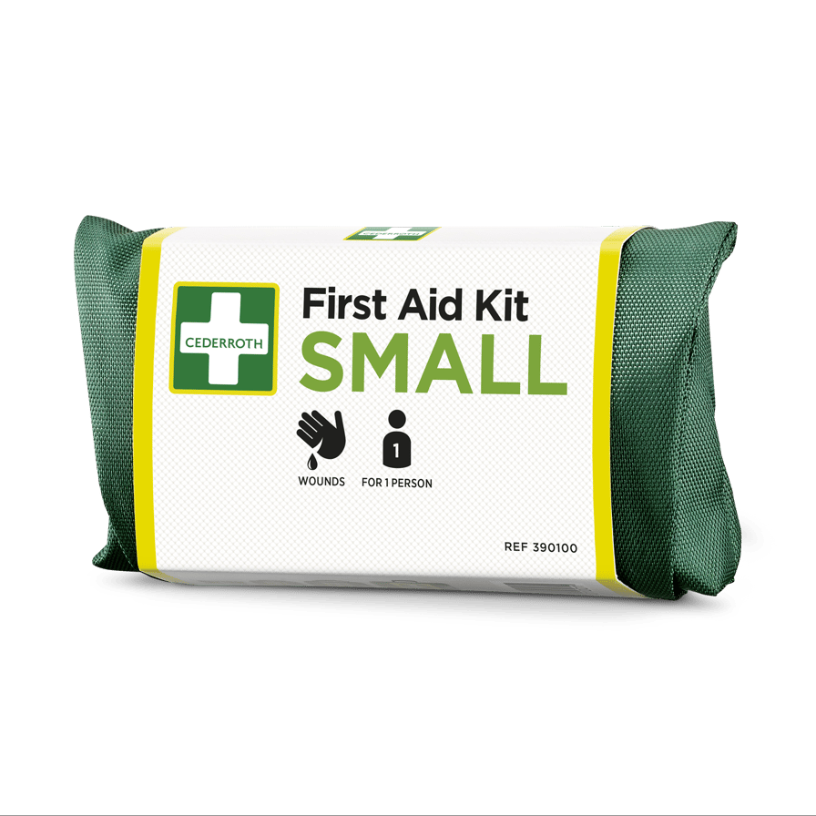 Cederroth First Aid Kit Small är ett smidigt kit i grön nylon med kardborrestängning och bälteshällor. Lätt att bära med sig för dig som ofta är på språng. För en person. Produktfördelar: lätt att ta med. Plåster lättåtkomligt. Synlig på håll. Innehåll: 1 Cederroth 4-in-1 Blodstoppare (REF 1910). 6 Salvequick Plåster (REF 510005534). 2 Salvequick Big Plasters (REF 510005534). 2 Salvequick Sårtvättare (REF 510005534). Mått: B 145 x H 74 x D 51 mm.