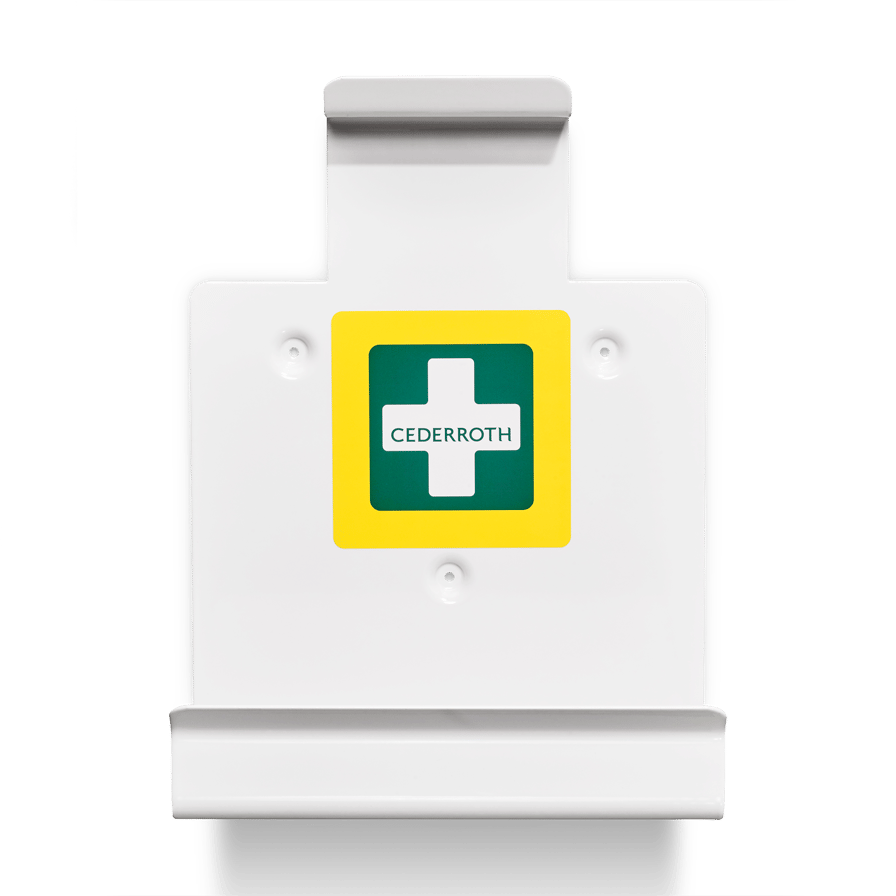 Vägghållare i plåt till Cederroth First Aid Kit X-Large (REF 390103) och DIN (REF 390104). Med vägghållaren får väskan en bestämd plats och är synlig på långt håll.