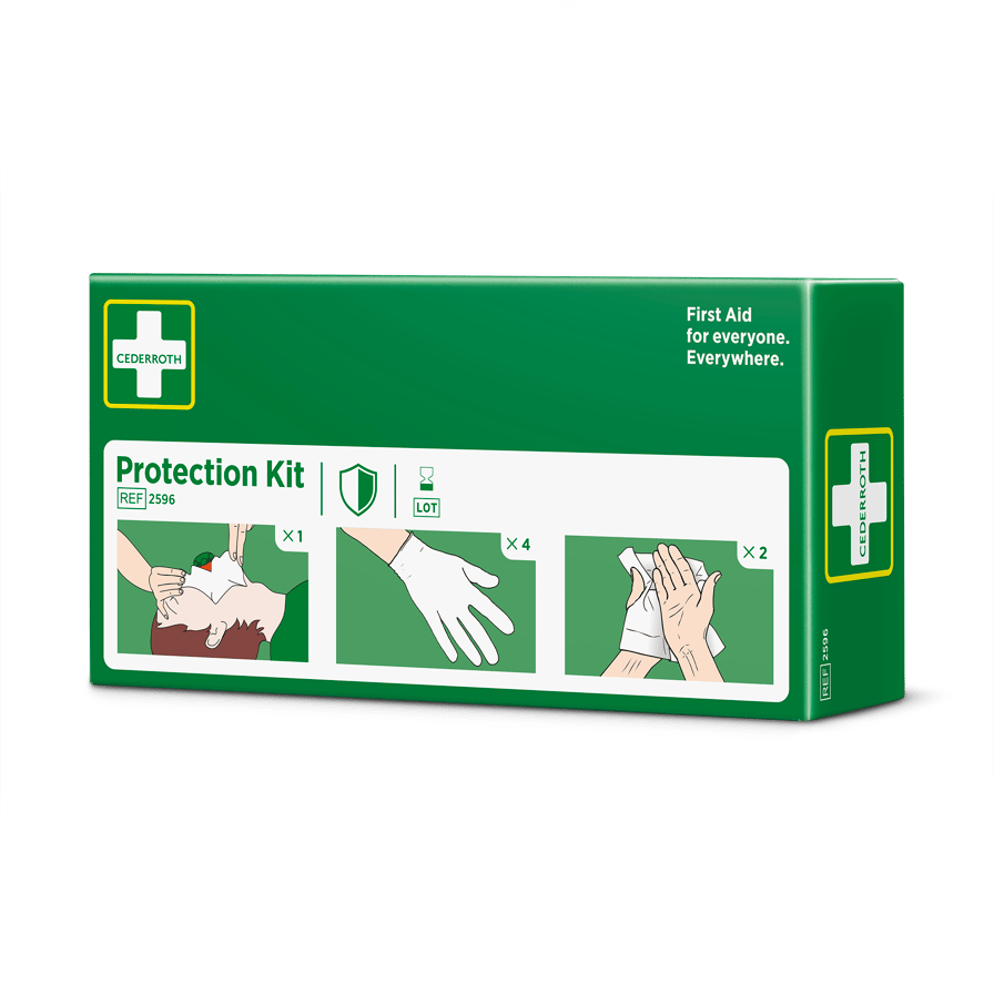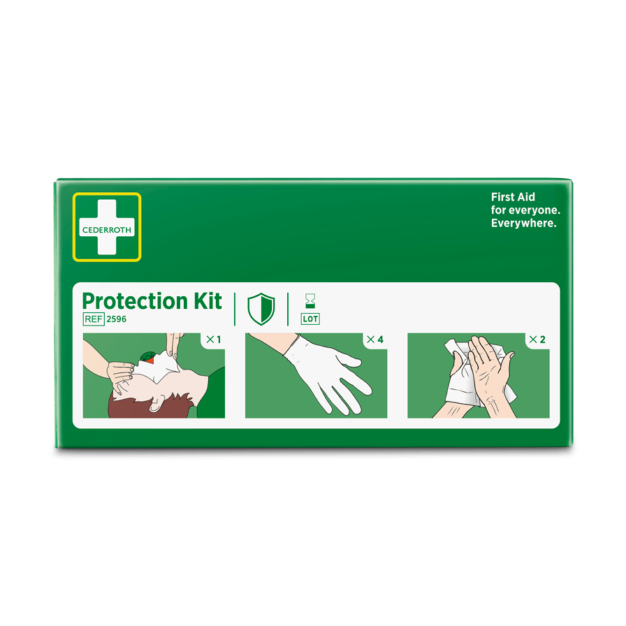 Cederroth Skyddspaket är ett hjälpmedel för att ge mun-till-mun-andning på rätt sätt samtidigt som det minskar risken för kontakt mellan hjälpare och skadad. Cederroths andningsmask är försedd med backventil. På skyddsduken finns tydliga instruktioner i färg. Innehåll: 1 st andningsmask med backventil. 4 st handskar. 2 st Cederroth Safety Hand Cleanser (innehåller 70% alkohol).