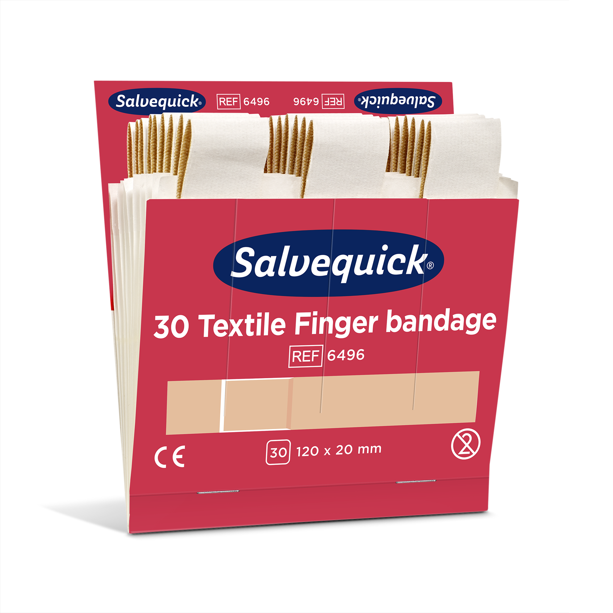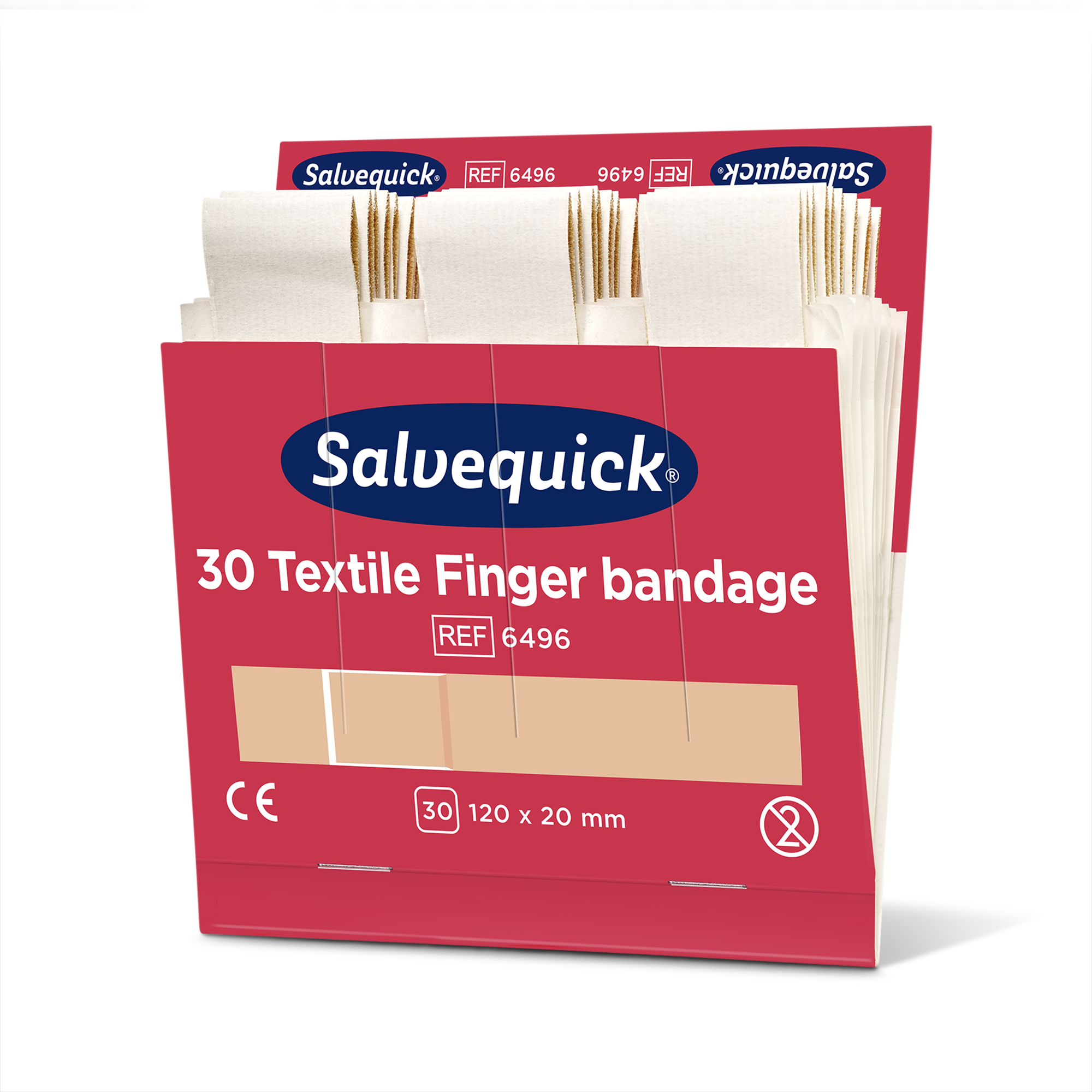 Salvequick Textile Finger Bandage är extra långa textilplåster, mjuka och följsamma. Allergivänliga plåster. Passar i Salvequick Plåsterautomat.
