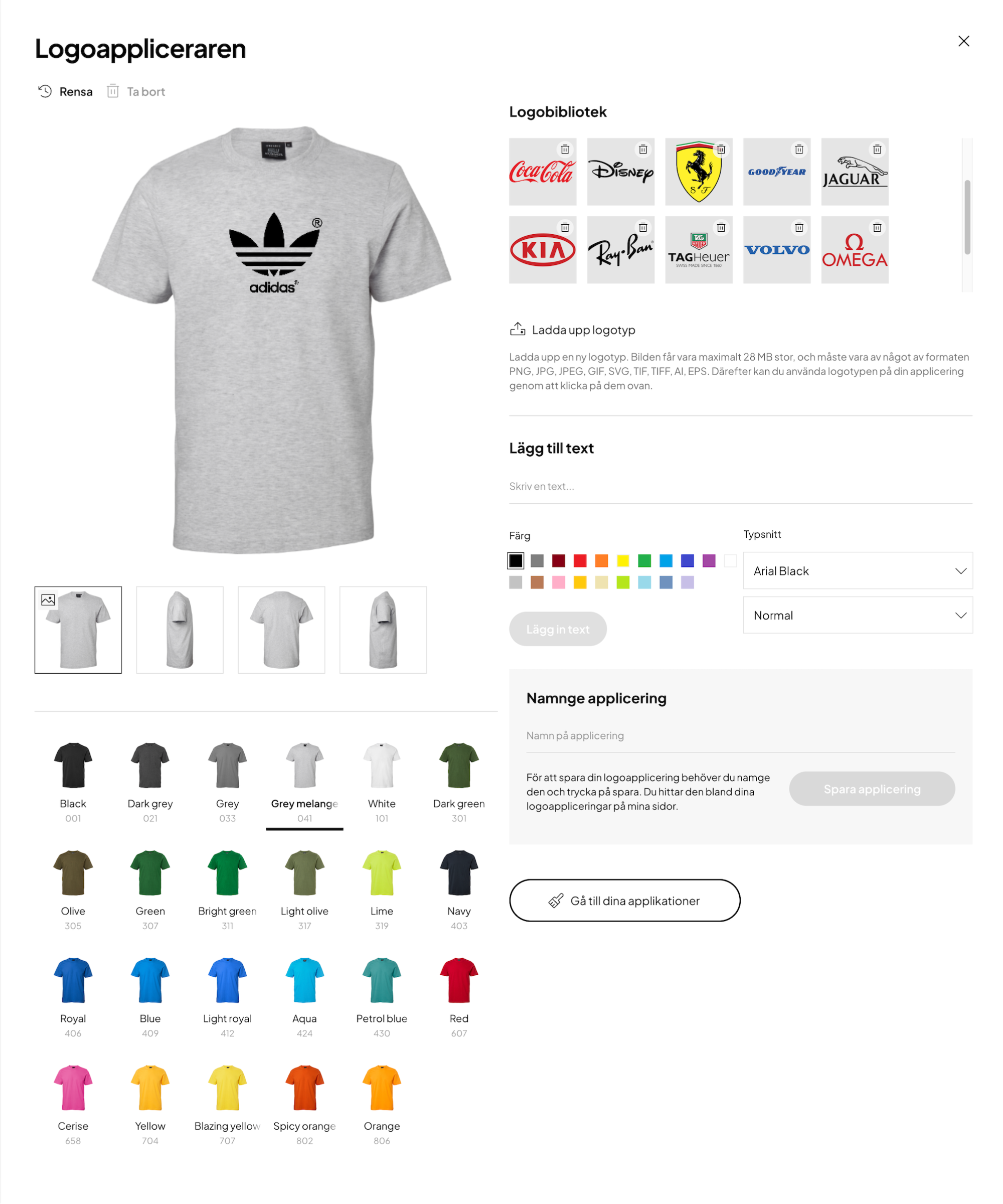 Vill du komma igång snabbt är vårt online-verktyg Logoappliceraren en bra start. Du hittar logoappliceraren uppe i höger hörn på produkten.