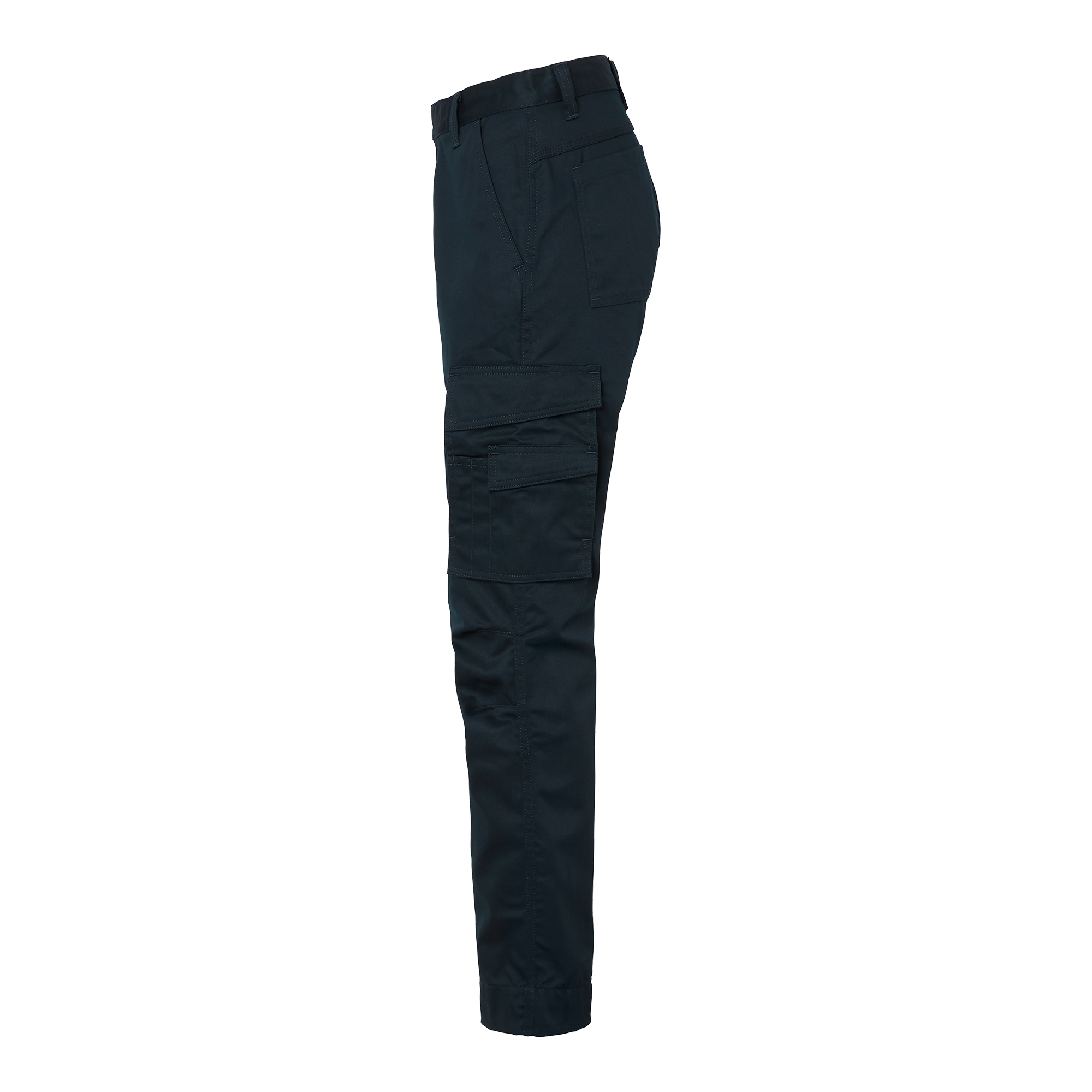 Servicebyxa i dampassform av slitstarkt material med mekanisk stretch, passande för många yrken. Utrustad med rymliga fickor, tumstocksficka och benficka med mobilficka. Förlängningsmöjlighet på 5 cm i benavslut.