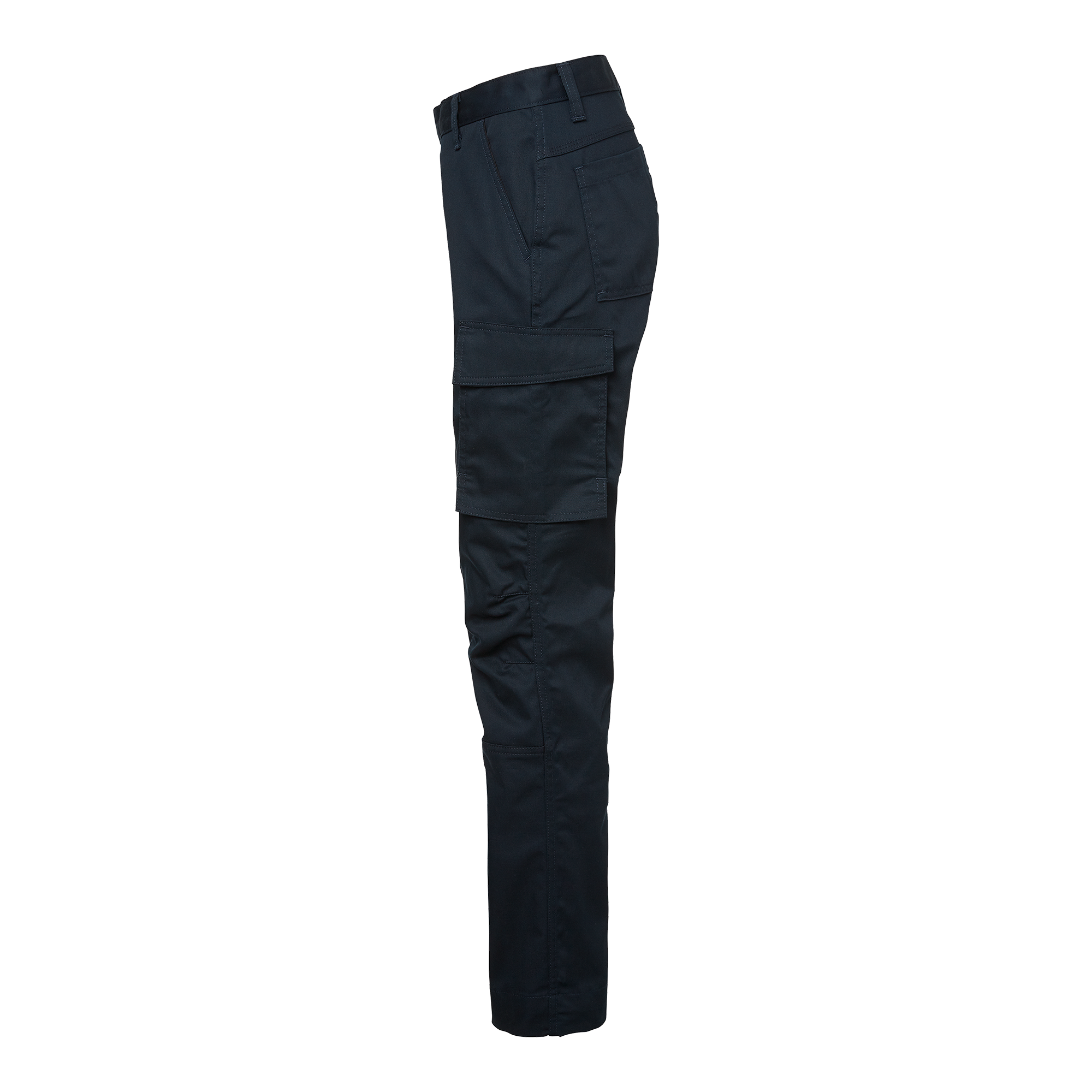 Servicebyxa med knäskyddsfickor passande för många olika typer av yrken. Gjord i slitstarkt material med mekanisk stretch. Byxan har generöst med rymliga fickor, bland annat benficka med mobilficka. Förlängningsmöjlighet (5 cm) i benavslut.
