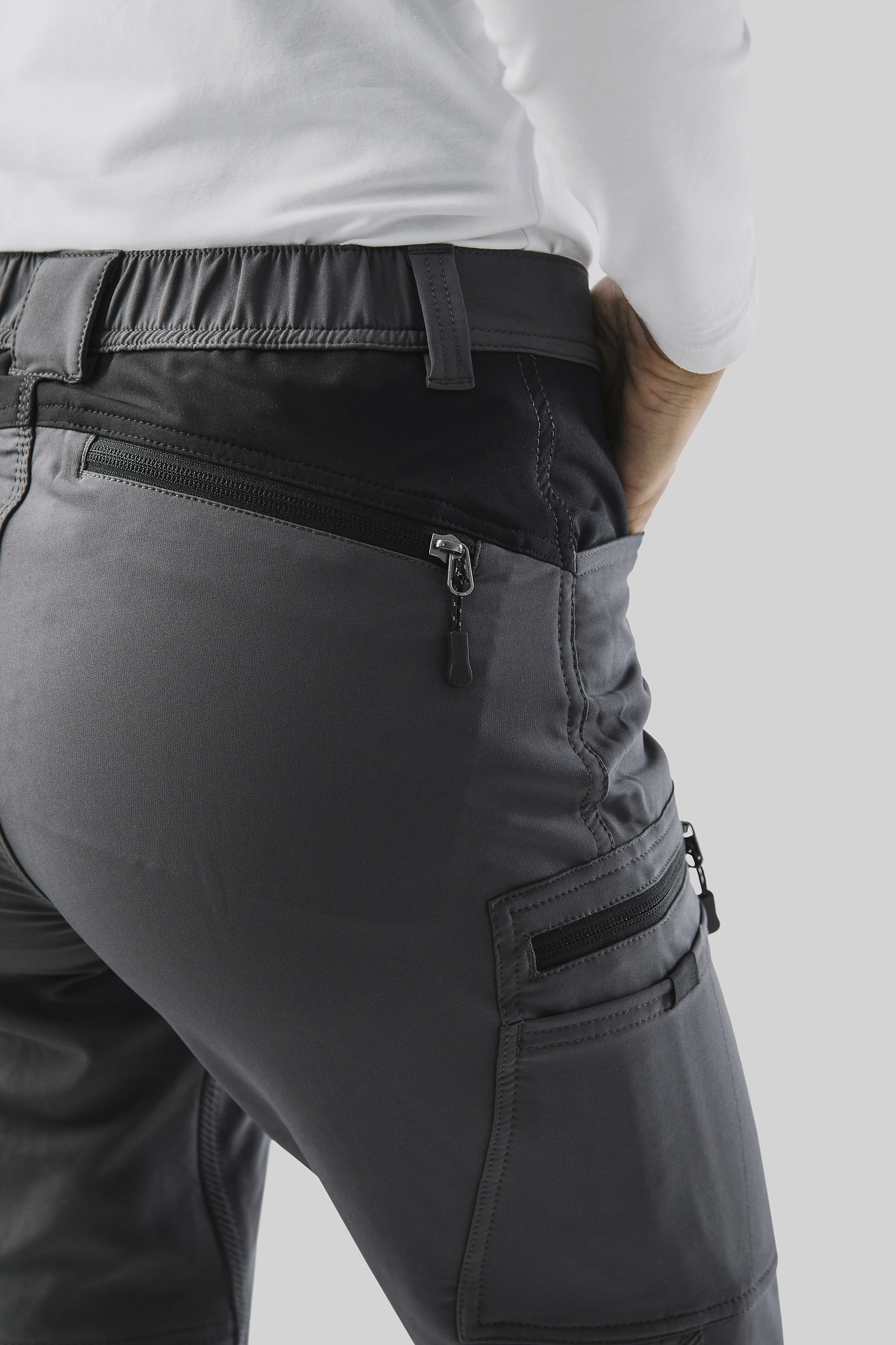 Praktisk 5-ficks hybridbyxa med dampassform i stretchig kvalitet för optimal rörelsefrihet och komfort. Benfickor och bakficka med dragkedjor och reflexdetaljer. Knappar nedtill på benen för justering av fotvidd.
