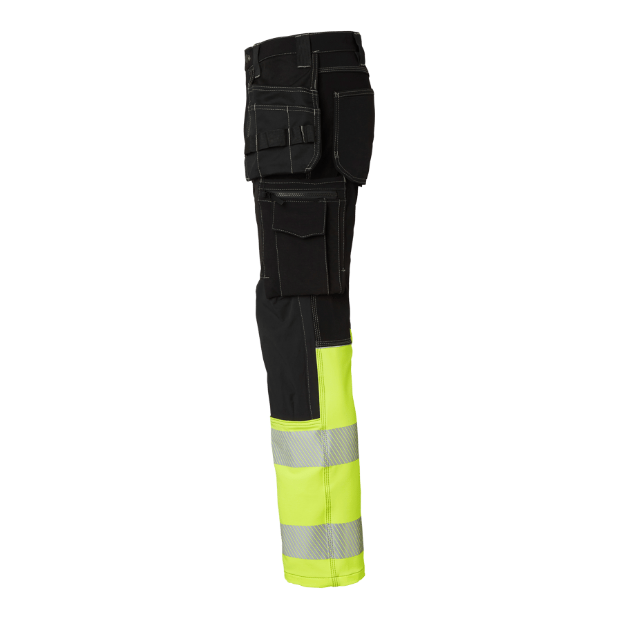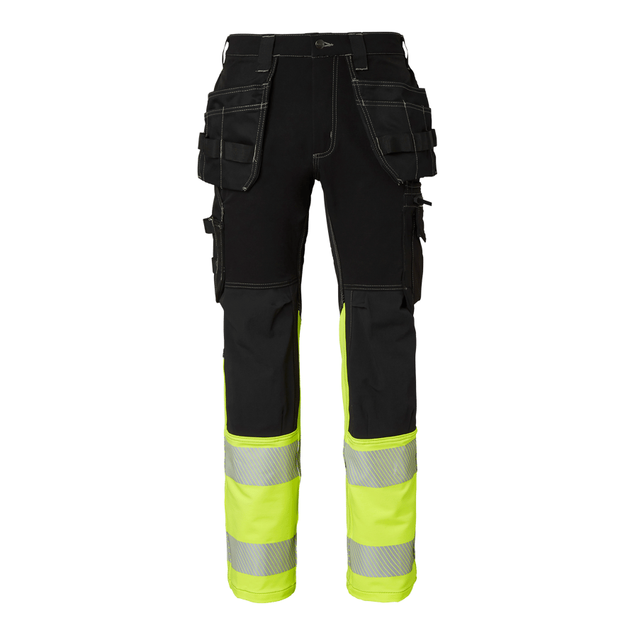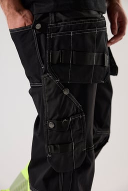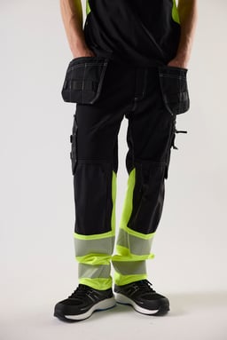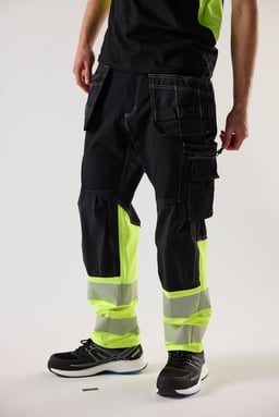 Hantverksbyxa i modern passform och 4-vägs stretch. Förböjda ben och knäfickor av Cordura®. Flera fickor inklusive spikfickor och benficka med dragkedja. Reflexdetaljer bak för ökad synbarhet. Perfekt för krävande arbetsmiljöer.