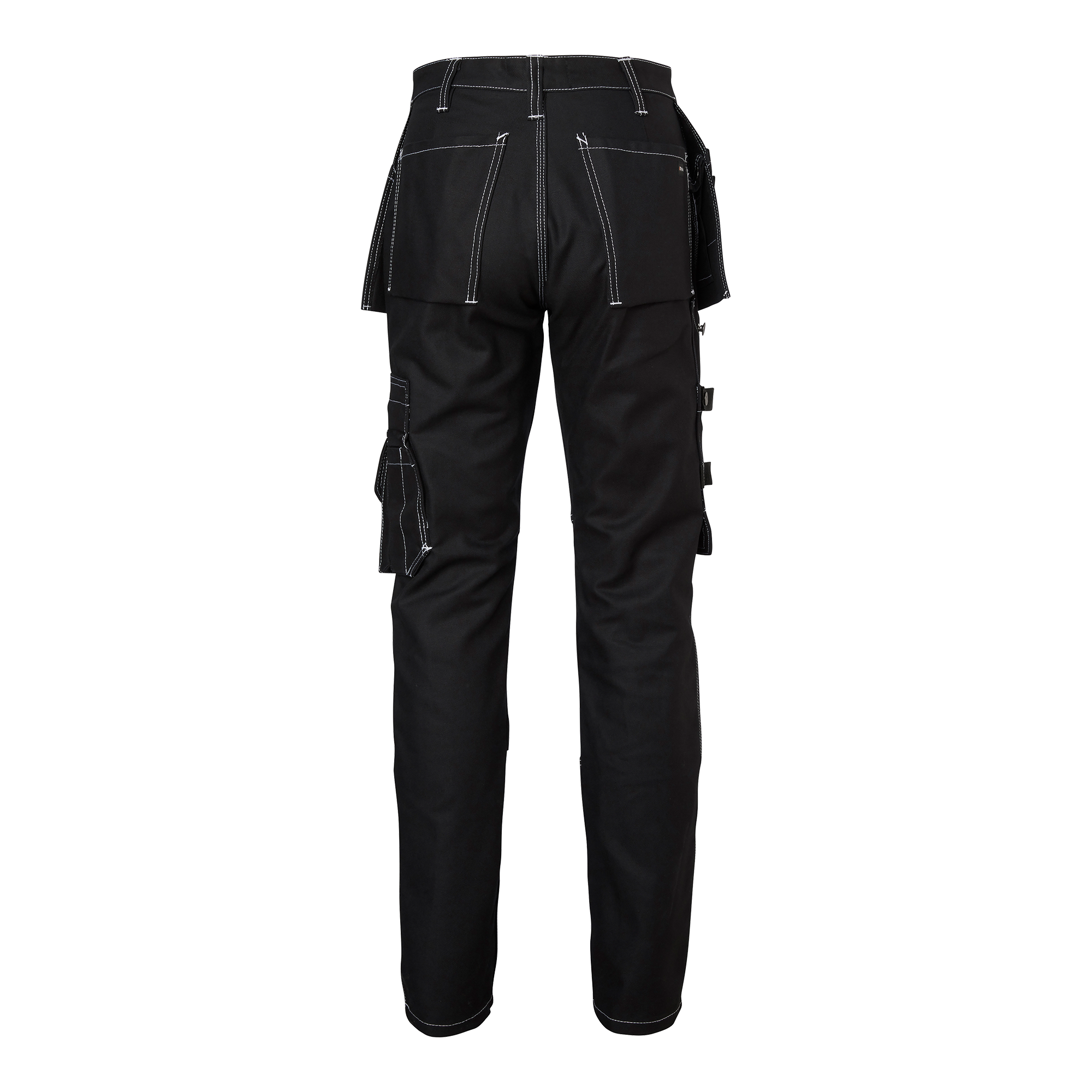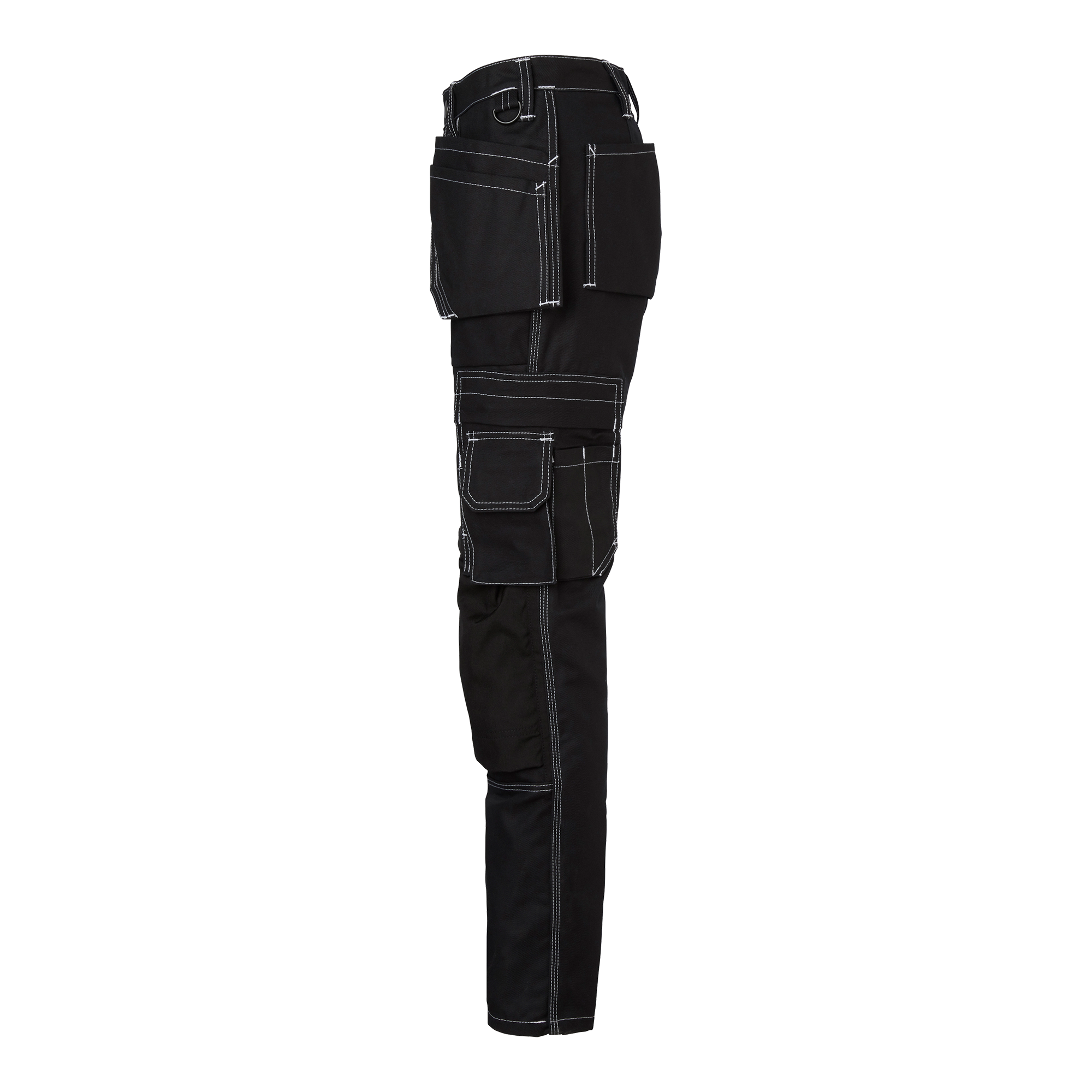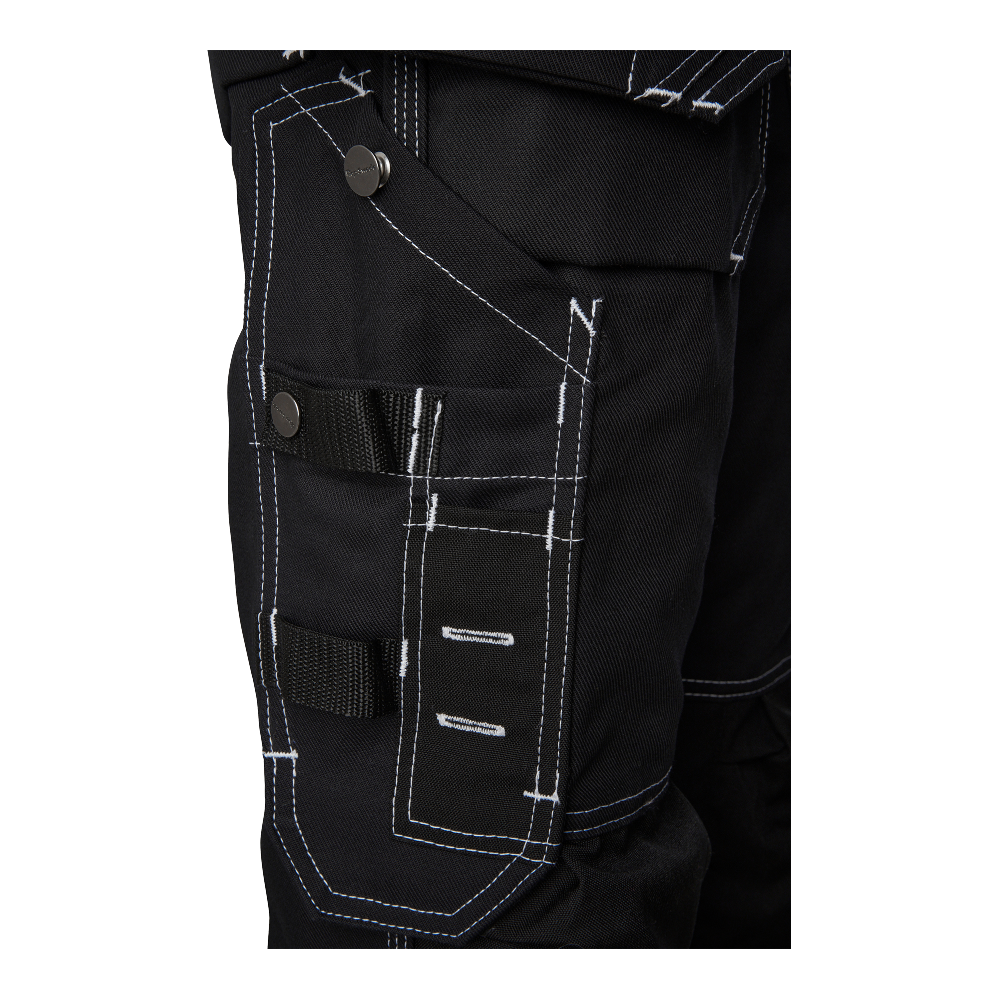 Hantverksbyxa i dammodell med förböjda ben och knäfickor i CORDURA®. Har två framfickor, två bakfickor och löst hängande spikfickor, alla förstärkta med CORDURA®. Utrustad med flera praktiska fickor och en reglerbar hammarhank.