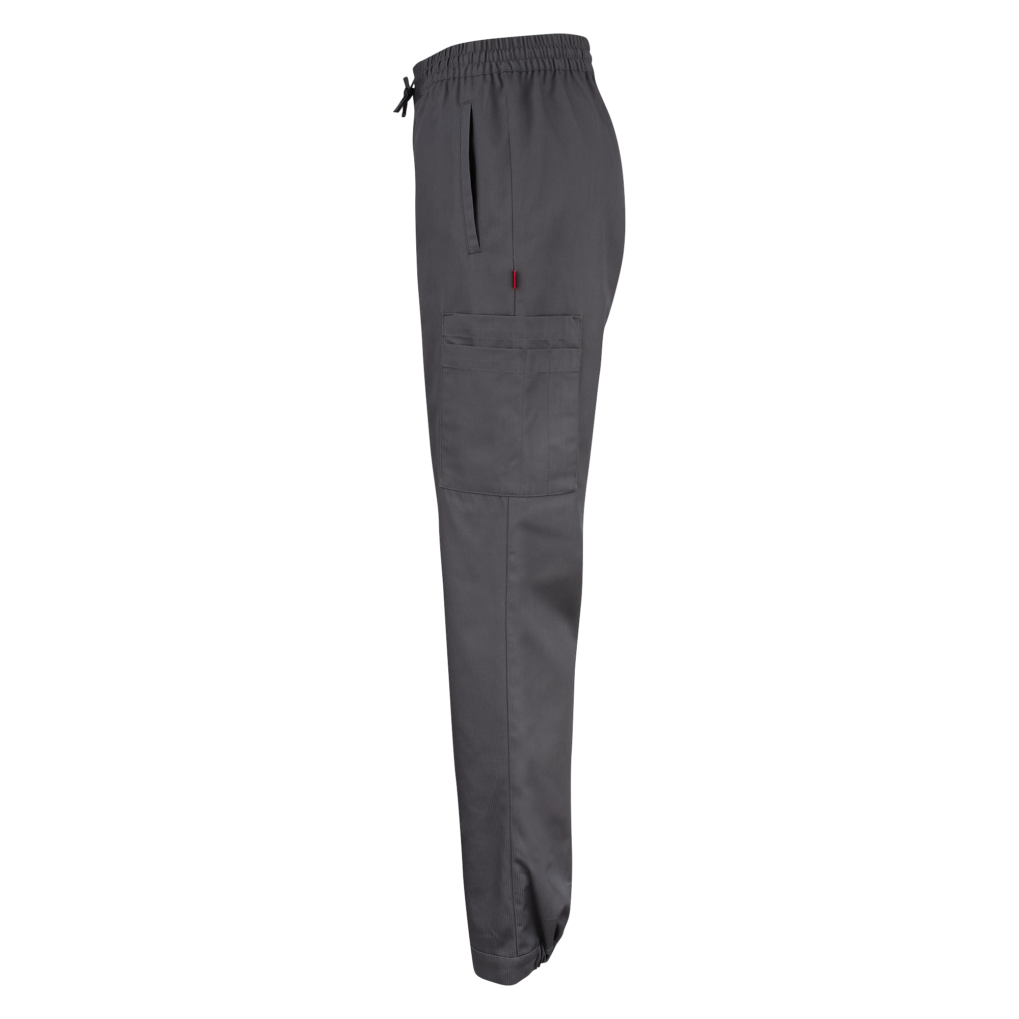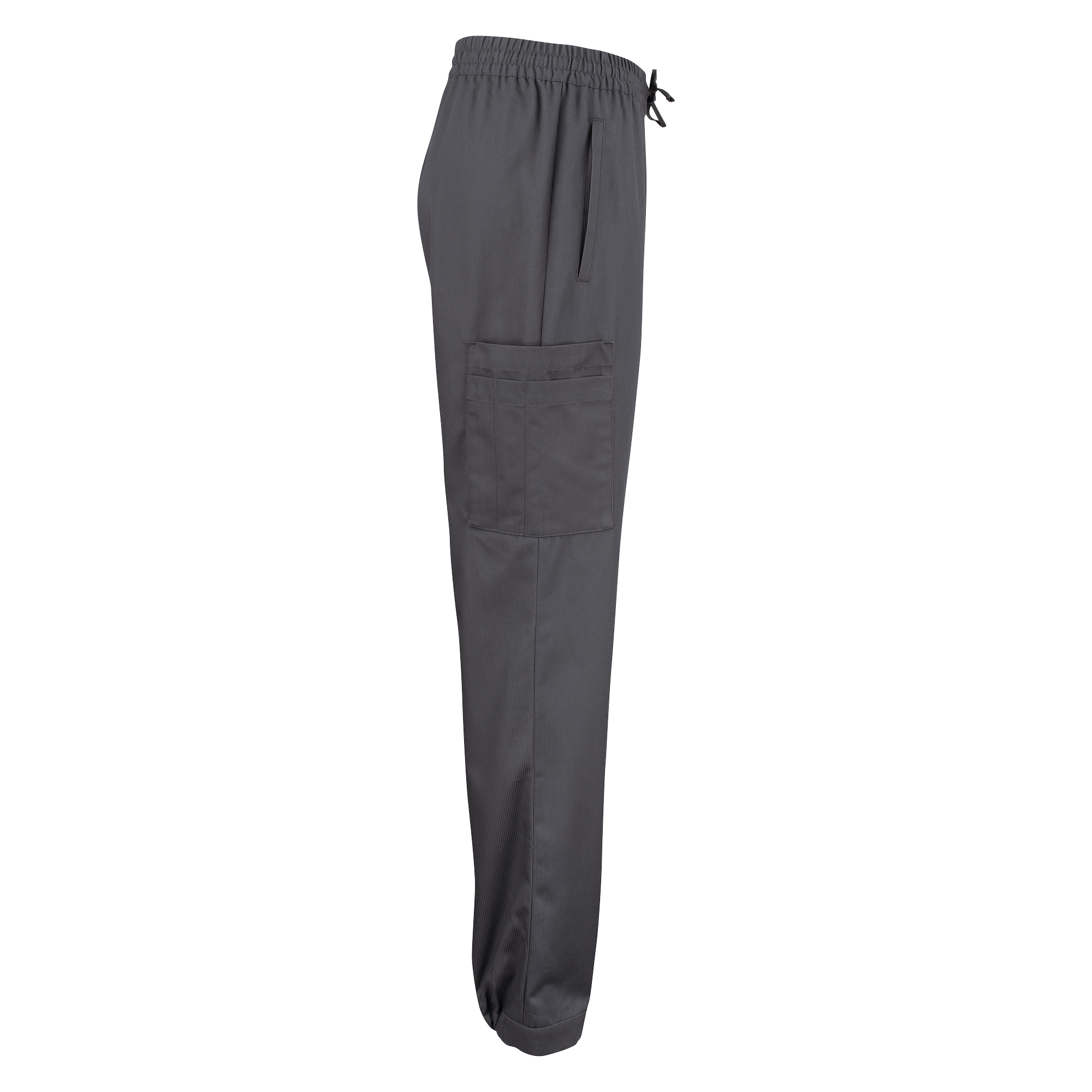 Smidig unisexbyxa med resår och dragsko i midjan. Utrustad med rymliga passpoalfickor fram, dubbla benfickor på båda benen och pennficka. Resår i bensluten bak.