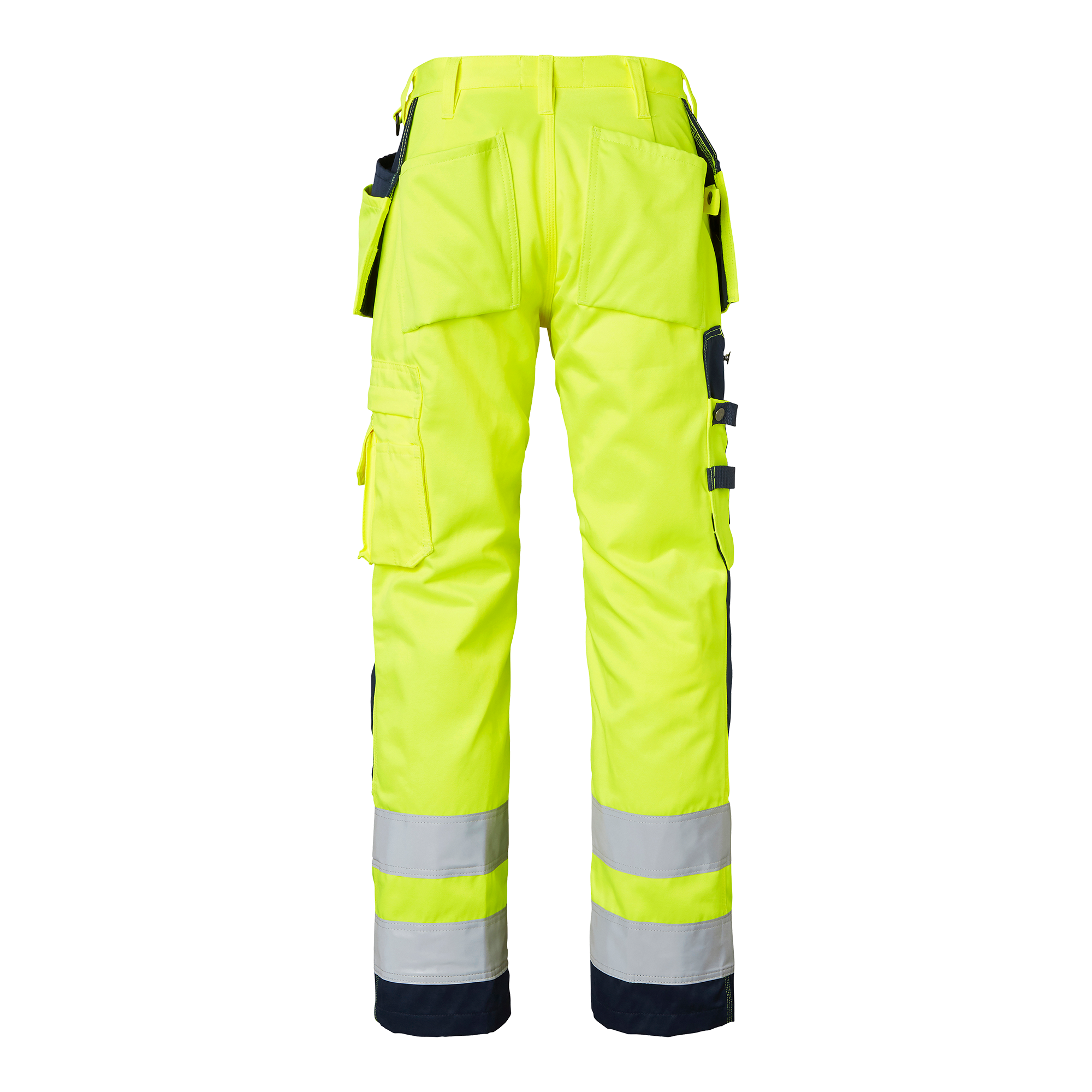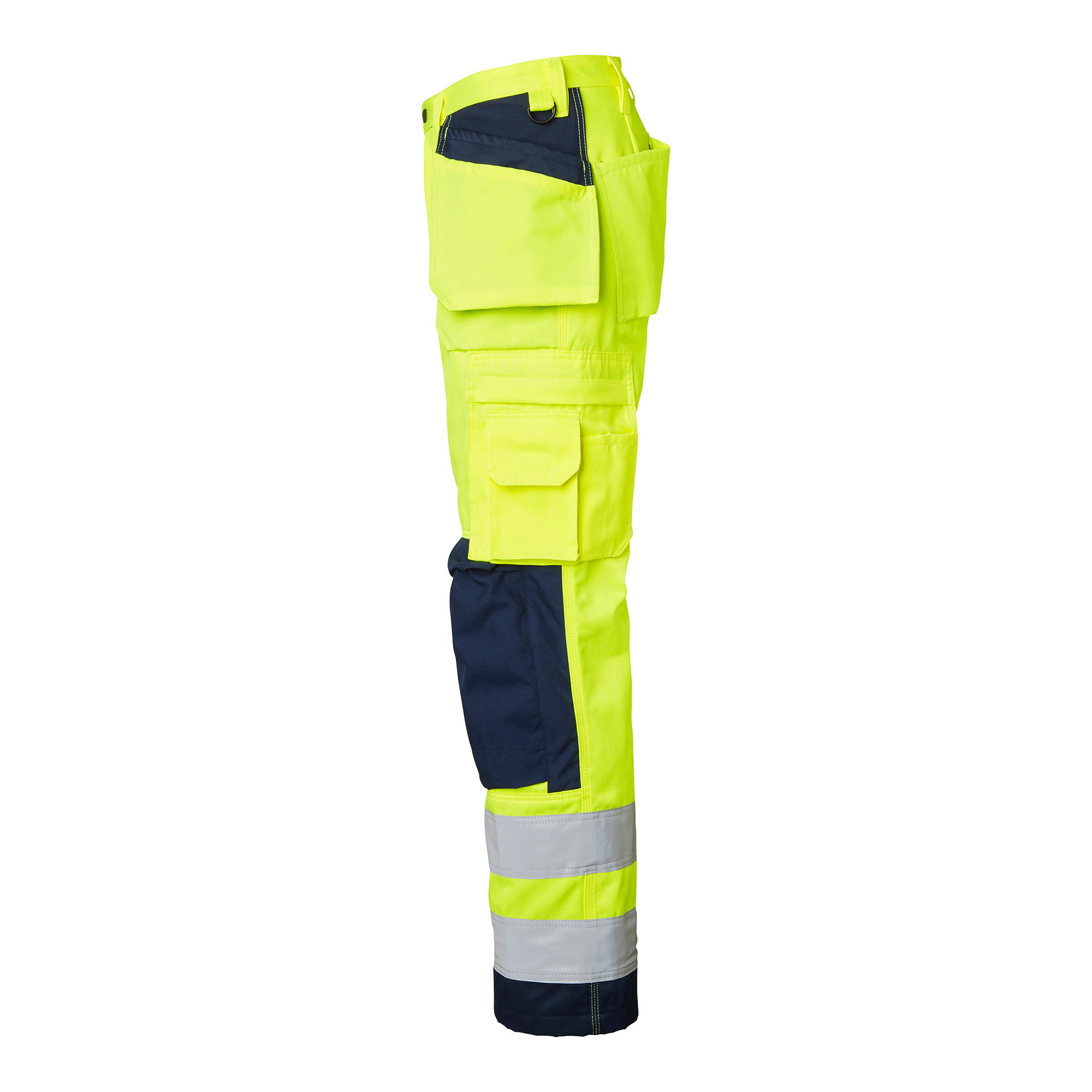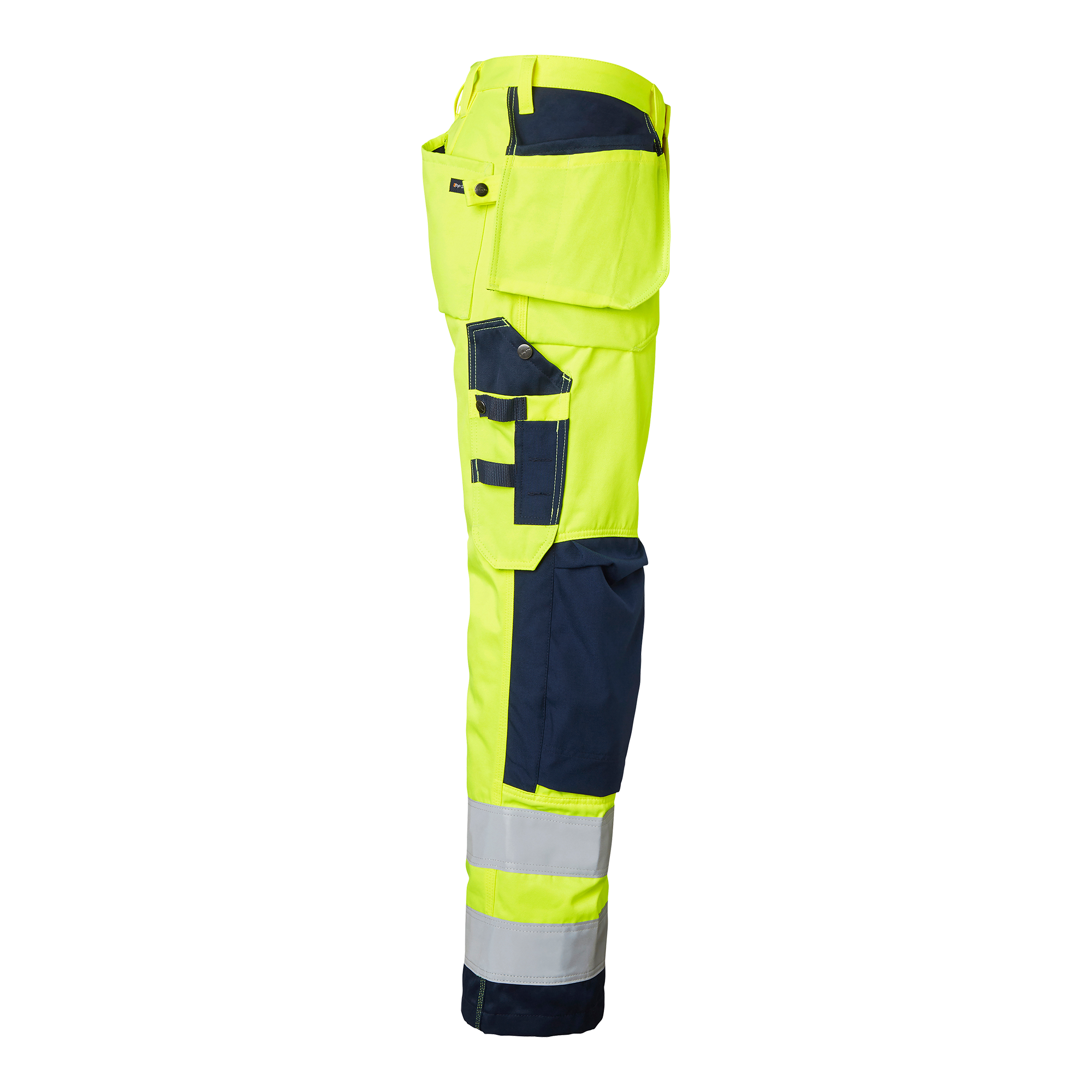 Top Swedes 2813 Trousers är de ultimata hantverksbyxorna för dig som behöver slitstarka och funktionella arbetskläder. Dessa byxor är designade med förböjda knän och Cordura®-förstärkta knäfickor som erbjuder två knäskyddsplaceringar för optimal komfort och skydd. Byxorna har praktiska, undanstoppningsbara spikfickor, en dold id-kortsficka, samt två fram- och bakfickor med lock och kardborreknäppning. Dessutom finns en benficka med lock, telefonficka och pennfack, tumstocksficka med knivknapp och knivhälla, samt en hammarhank och D-ring i fronthällan. Perfekta för krävande arbetsmiljöer där både synlighet och funktionalitet är av största vikt.