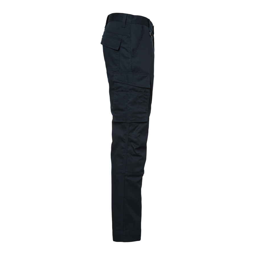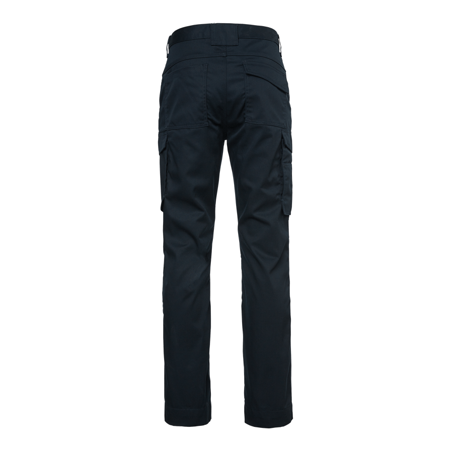 Servicebyxa med knäskyddsfickor passande för många olika typer av yrken. Gjord i slitstarkt material med mekanisk stretch. Byxan har generöst med rymliga fickor, bland annat benficka med mobilficka. Förlängningsmöjlighet (5 cm) i benavslut.