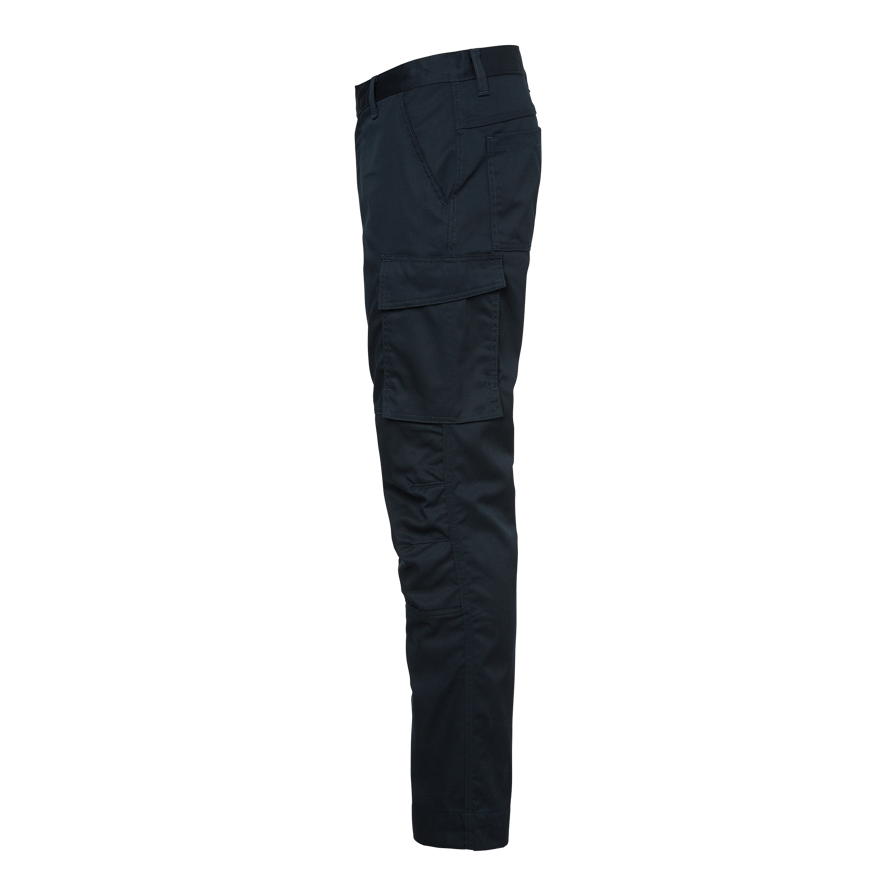 Servicebyxa med knäskyddsfickor passande för många olika typer av yrken. Gjord i slitstarkt material med mekanisk stretch. Byxan har generöst med rymliga fickor, bland annat benficka med mobilficka. Förlängningsmöjlighet (5 cm) i benavslut.