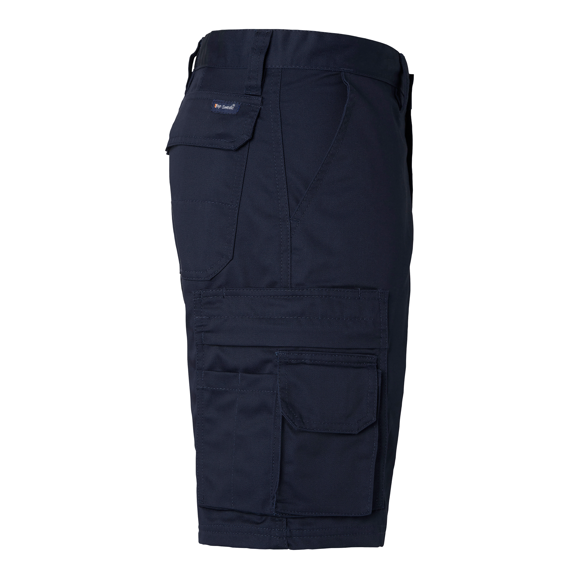 Shorts med två insydda framfickor och två bakfickor med lock och tryckknappar. Två benfickor med dragkedja, en med telefonficka och pennfack. Perfekt för arbete i varma miljöer.