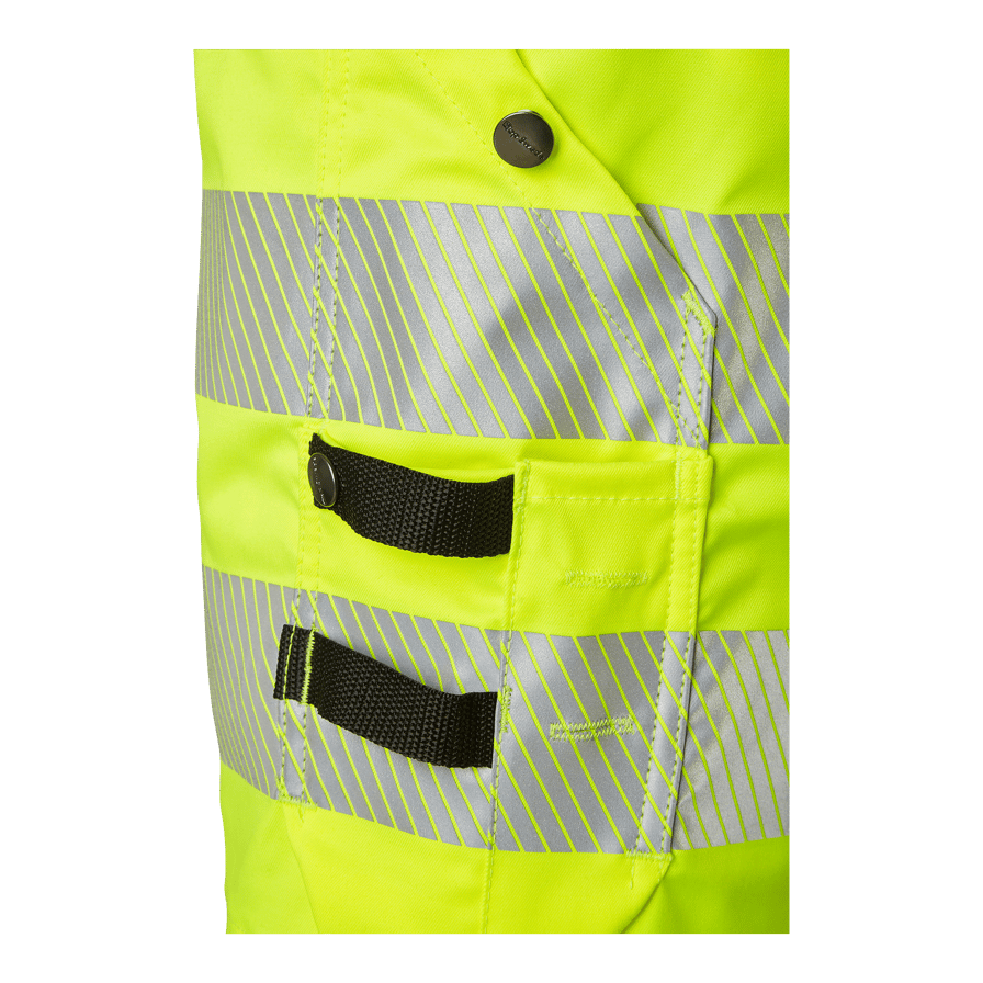 Upptäck Top Swedes 304 Craftsmen Shorts, de ultimata hantverksshortsen med varselfunktion för yrkesverksamma inom bygg och industri. Dessa shorts är helt tillverkade i komfortstretch för maximal rörelsefrihet och komfort under arbetsdagen. De har två framfickor, två förstärkta bakfickor och två löst hängande spikfickor med extra fack, verktygshällor och en dold ID-kortsficka som kan fällas ner. Shortsen är utrustade med en reglerbar hammarhank och en D-ring för extra verktyg. Tumstocksfickan, släppt nertill för bättre komfort, har två knivhållare, hälla och pennfack. Dessutom finns en benficka med dragkedja och en med lock och telefonficka. Den fluorescerande gula färgen och reflexdetaljerna säkerställer hög synlighet på arbetsplatsen. Välj 304 Craftsmen Shorts för en kombination av hållbarhet, funktionalitet och komfort i dina arbetskläder, perfekt för varma arbetsmiljöer där synlighet och rörlighet är avgörande.