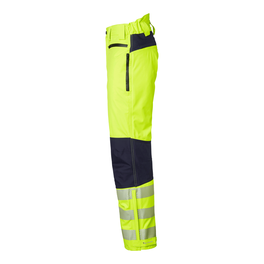 Vind- och vattentäta skalbyxor i 3-lagersmaterial med tejpade sömmar och andasfunktion. Har förböjda ben, justerbara benslut, vattentäta fickor, och förhöjd rygg med resår för bästa passform. Perfekt för krävande arbetsmiljöer.