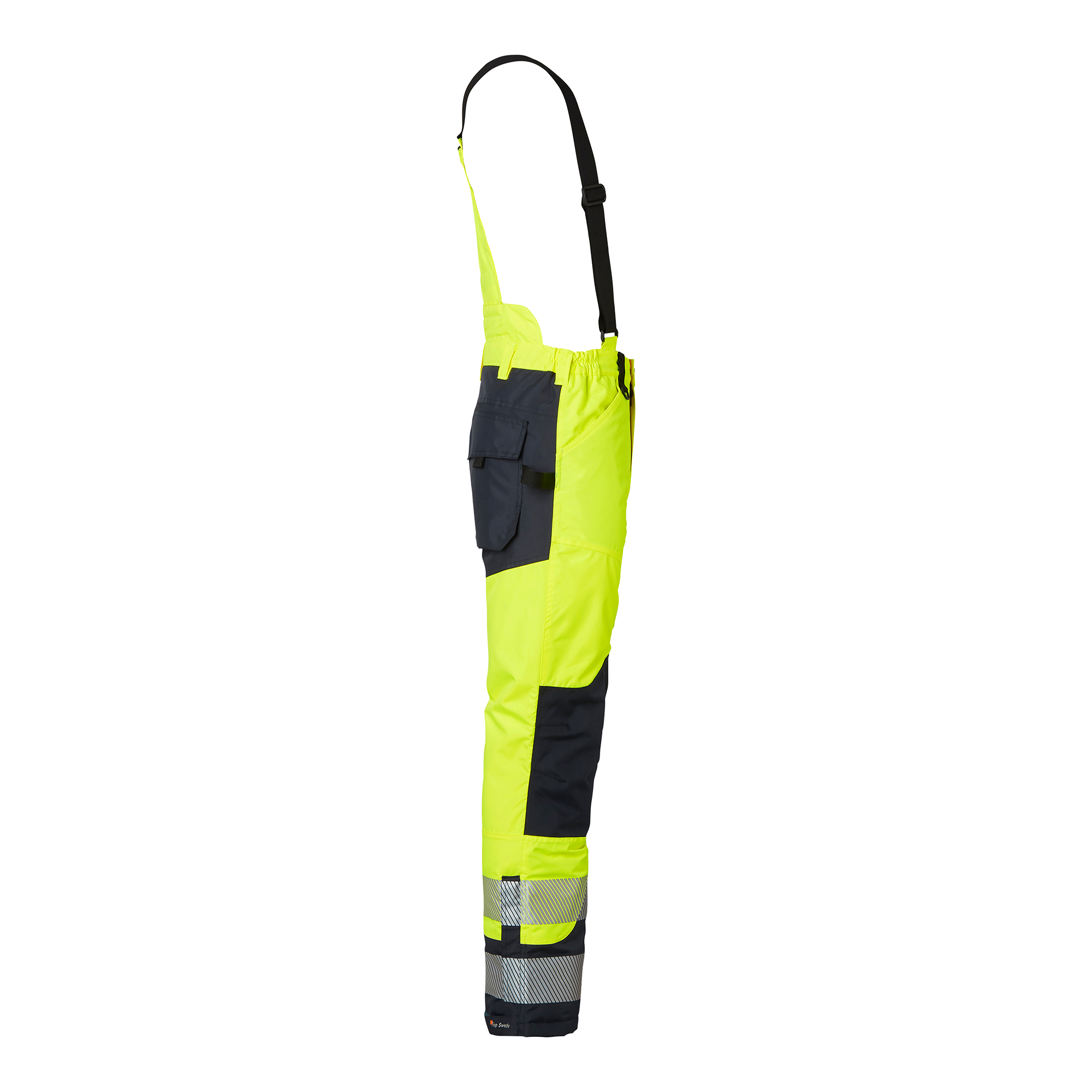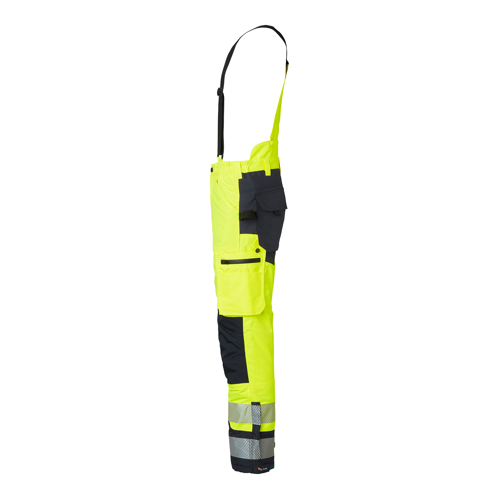 Quiltfodrad vinterbyxa från Top Swede. Vind- och vattentät med tejpade sömmar, förböjda ben och löstagbara hängslen. Flera praktiska fickor och justerbart benslut. Perfekt för arbete inom bygg och industri.
