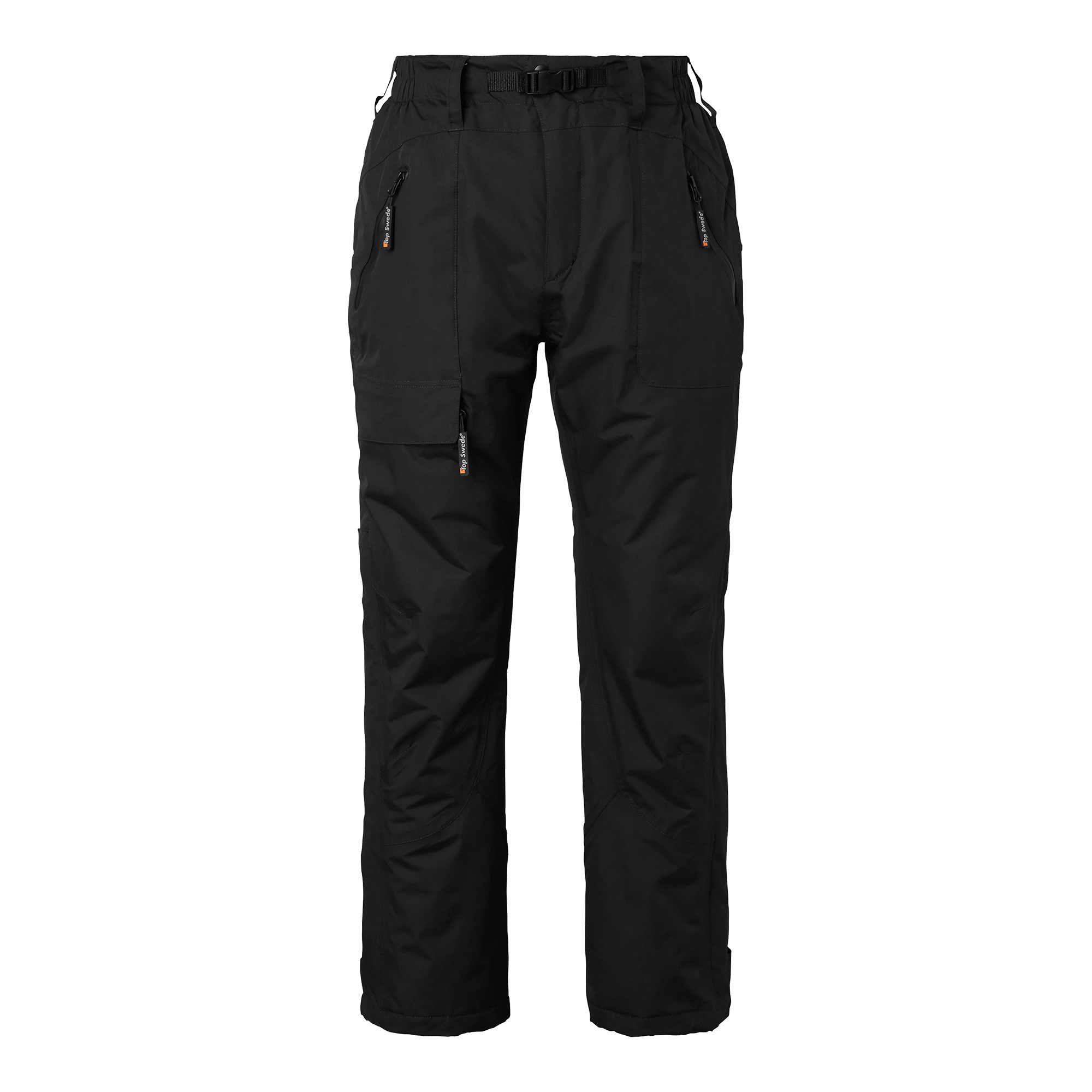 Quiltfodrad vinterbyxa som är vind- och vattentät med tejpade sömmar. Löstagbara hängslen, två framfickor med vattentäta dragkedjor, benficka med dragkedja, förböjda knän och reglerbara benslut. Perfekt för arbete i kalla miljöer.