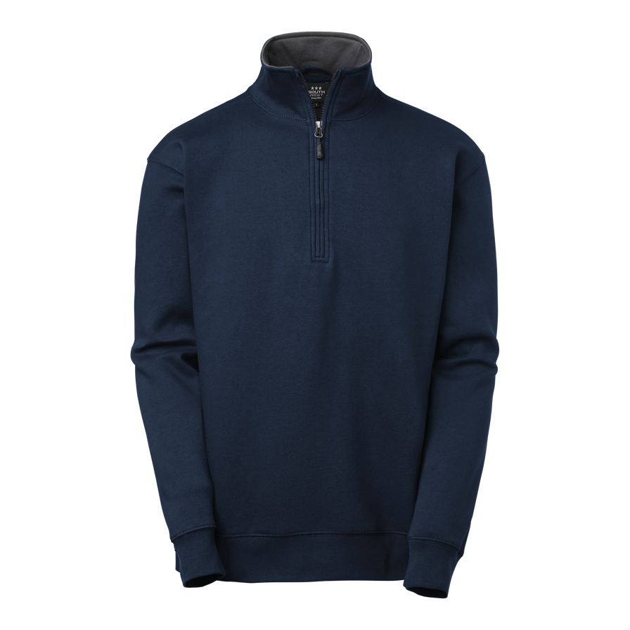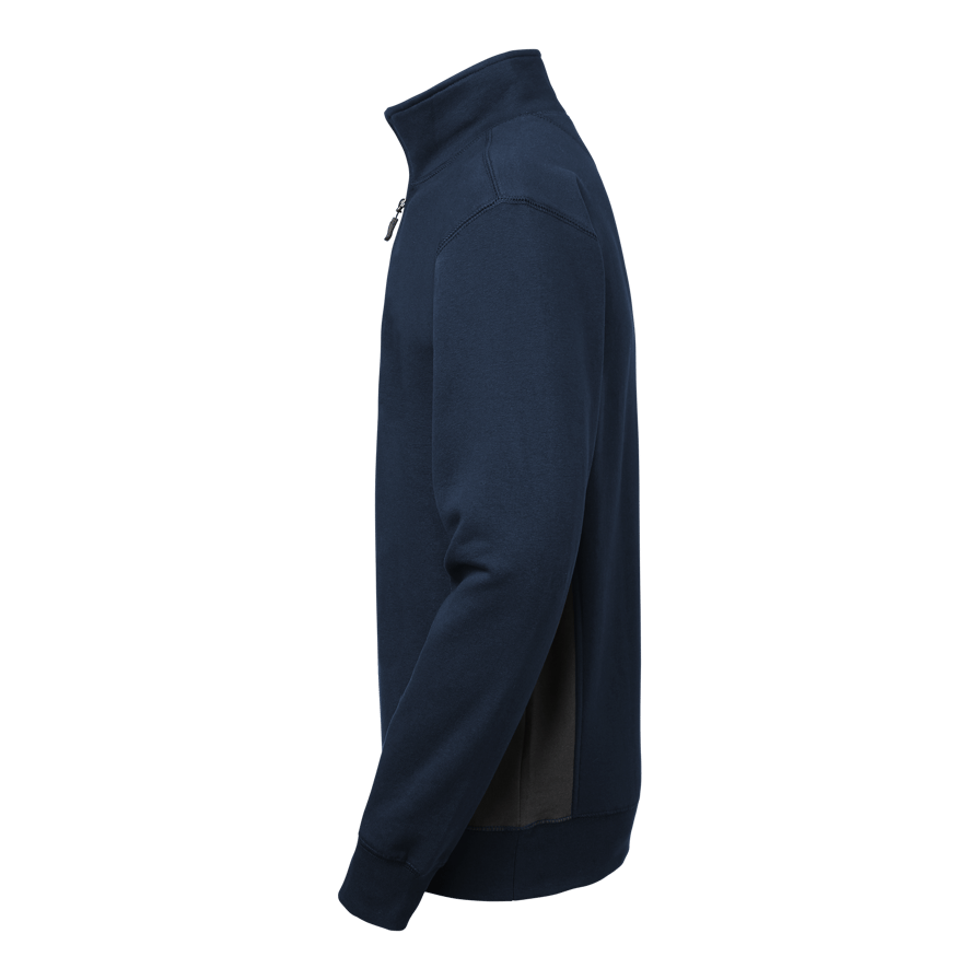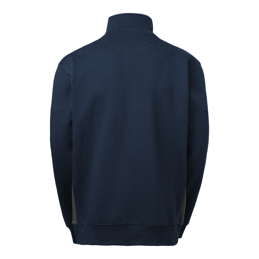 Collegetröja med borstad insida, ståkrage och kort dragkedja i halsen. Avvikande paneler i sidan och elastiska muddar i nederkant och ärmslut. Vissa färger har förhöjd synbarhet.