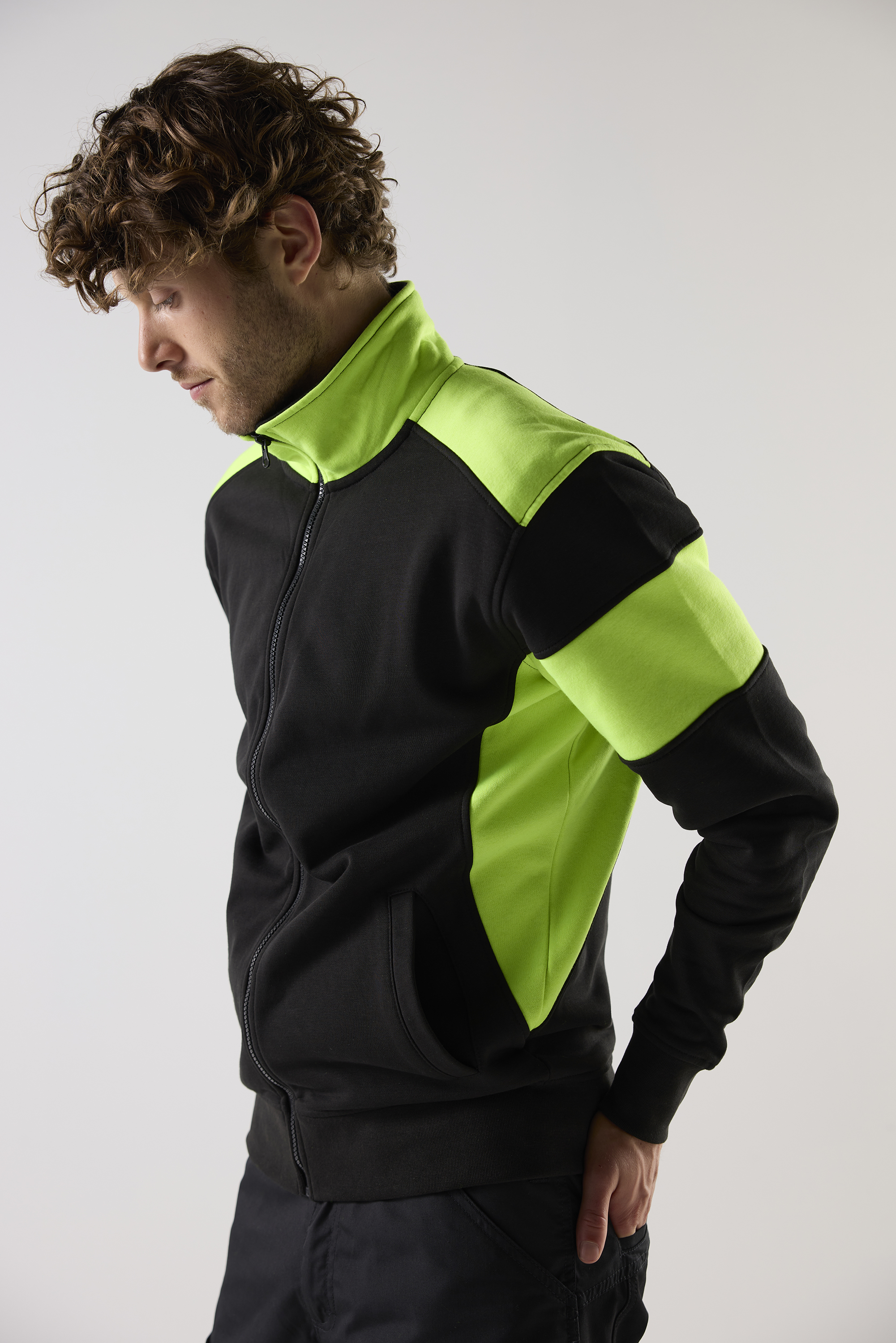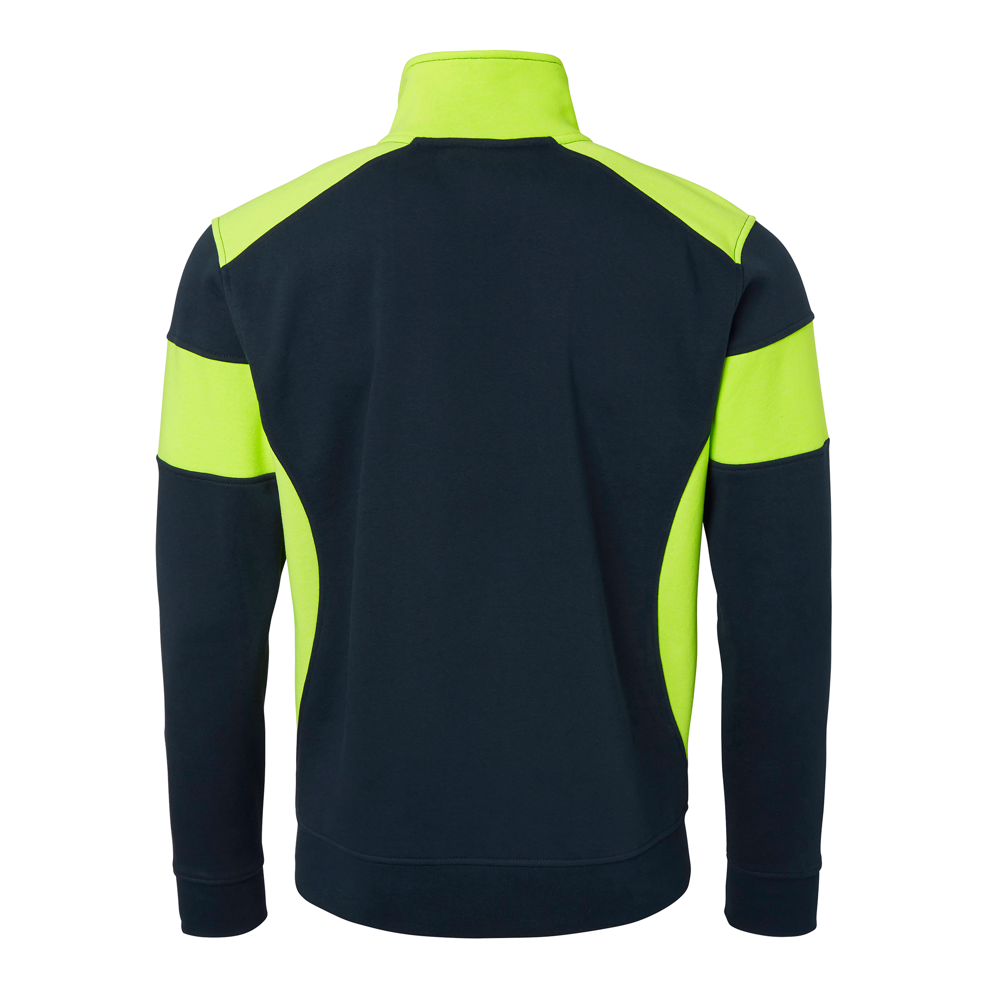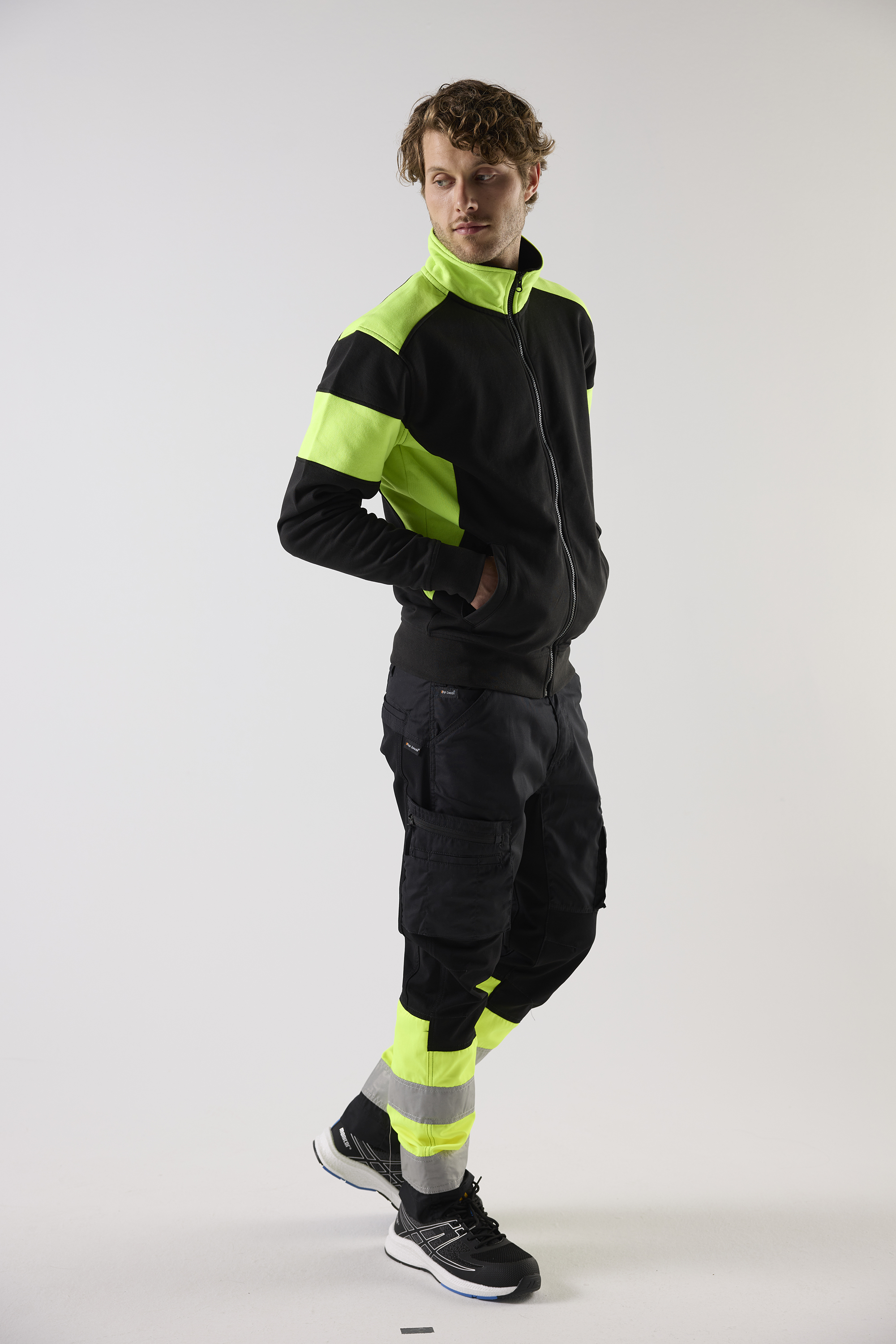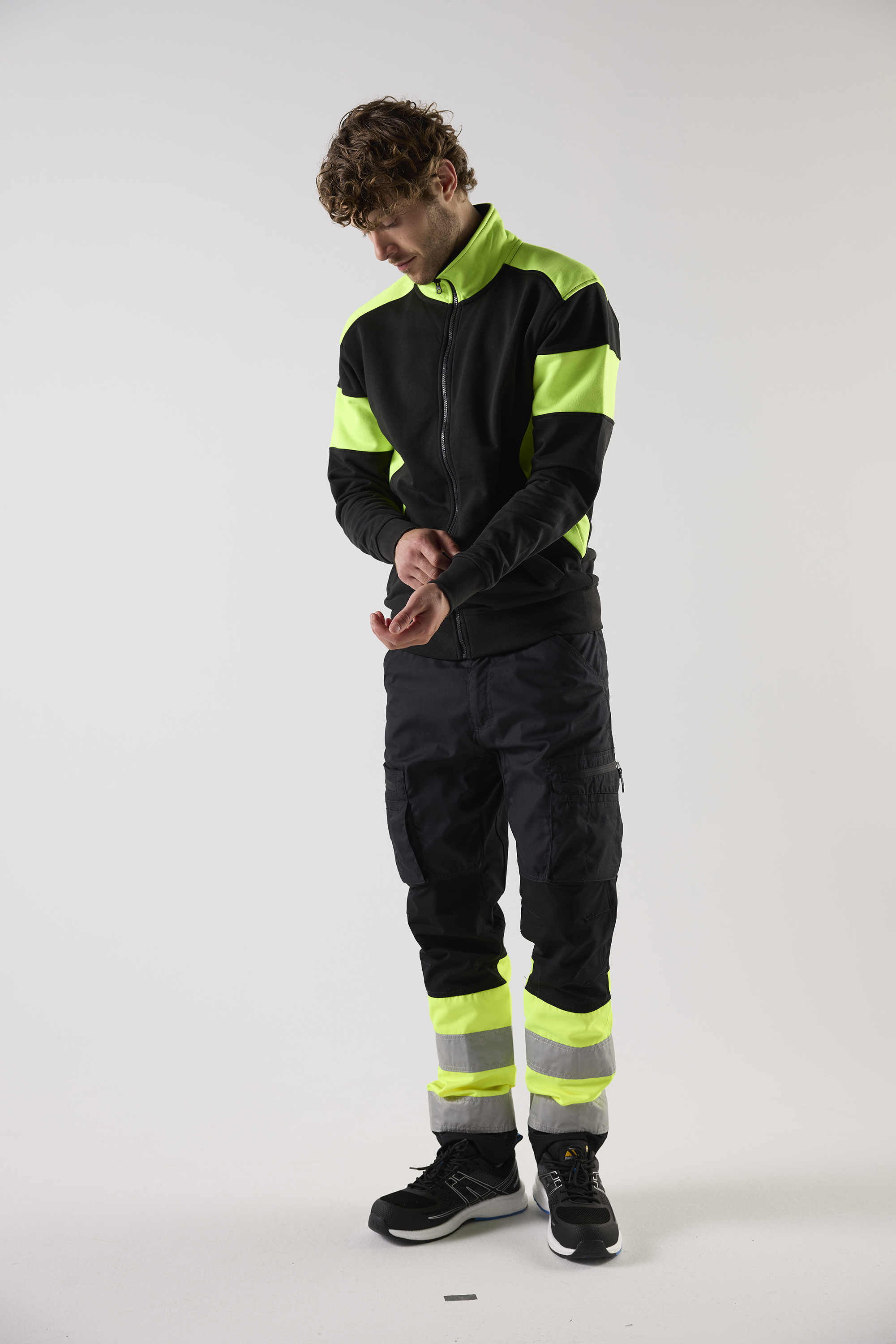 Sweatshirt med förhöjd synbarhet från Top Swede. Hel dragkedja upp i kragen, två framfickor och mudd i ärmslut och nederkant. Tillverkad av bomull och polyester för komfort och hållbarhet. Perfekt för arbete inom bygg och industri.