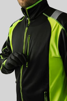 Tröja med hel dragkedja och kedjeskydd, bröstficka med dragkedja och knäppanordning för ID-kort. Reflex för hög synbarhet, två framfickor med dragkedja, telefonficka. Elastisk nederkant och ärmslut. Perfekt för arbete i krävande miljöer.